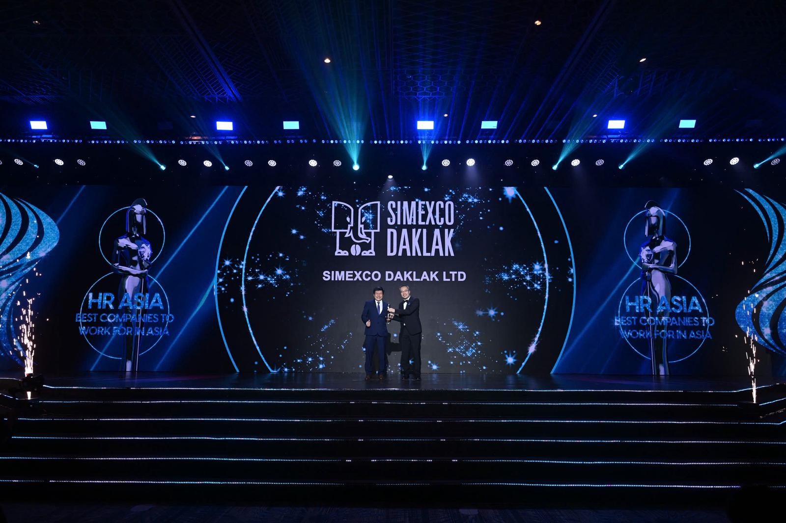 Đại diện Simexco Daklak nhận giải thưởng "Nơi làm việc tốt nhất châu Á 2025" từ Tạp chí HR Asia. Ảnh: Simexco Daklak