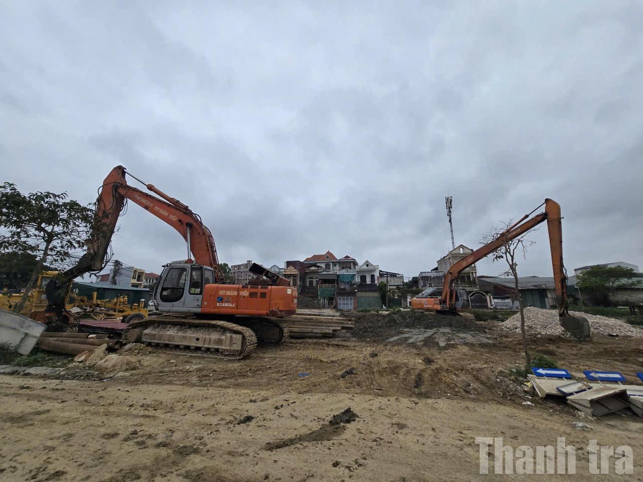 Máy móc, trang thiết bị được huy động ở các công trình trọng điểm ở Thanh Hóa để đẩy nhanh tiến độ thi công những ngày đầu năm mới. Ảnh: Văn Thanh