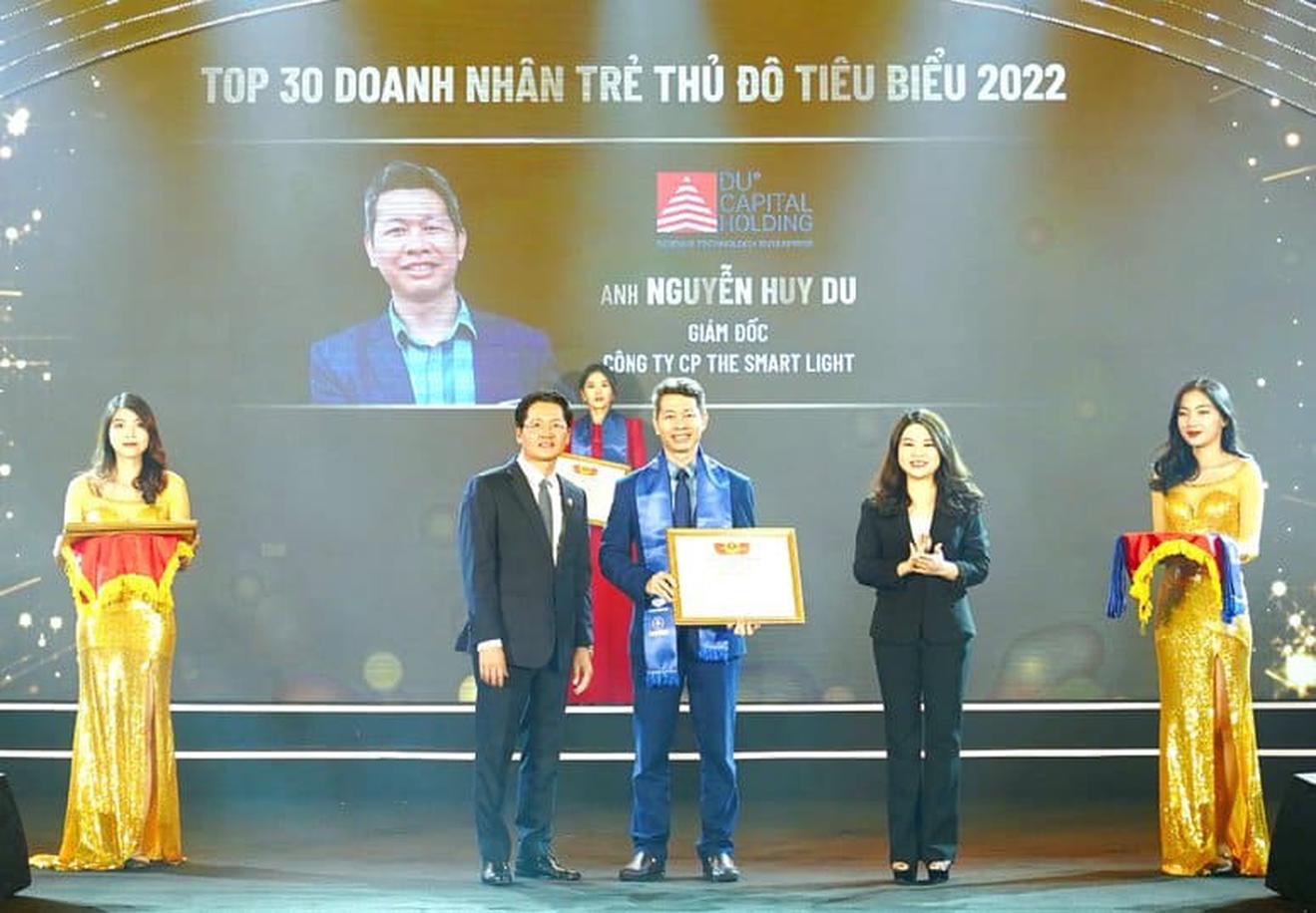Ông Nguyễn Huy Du tại Lê tuyên dương Top 30 Doanh nhân trẻ Thủ đô tiêu biểu năm 2022. Ảnh: H.D