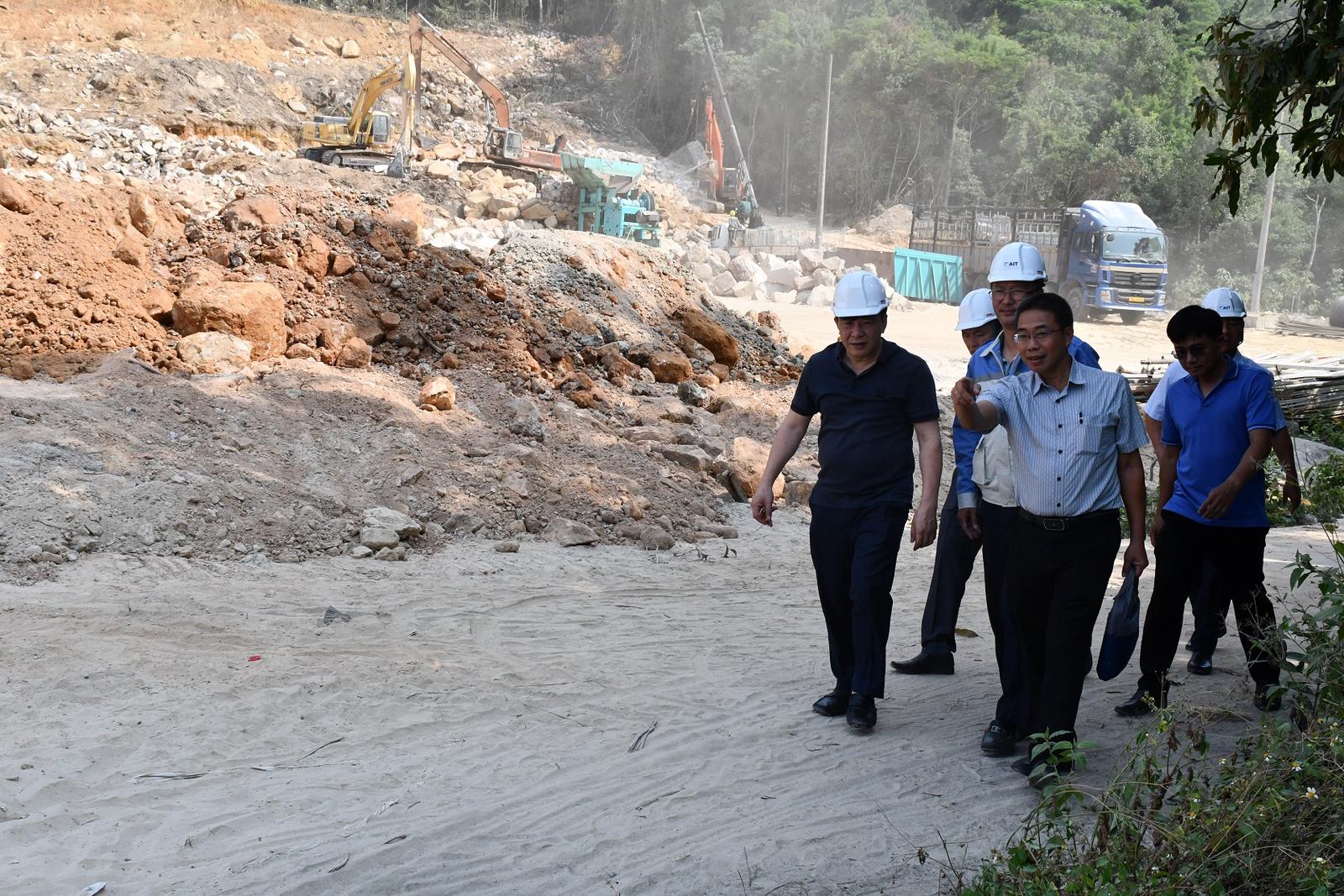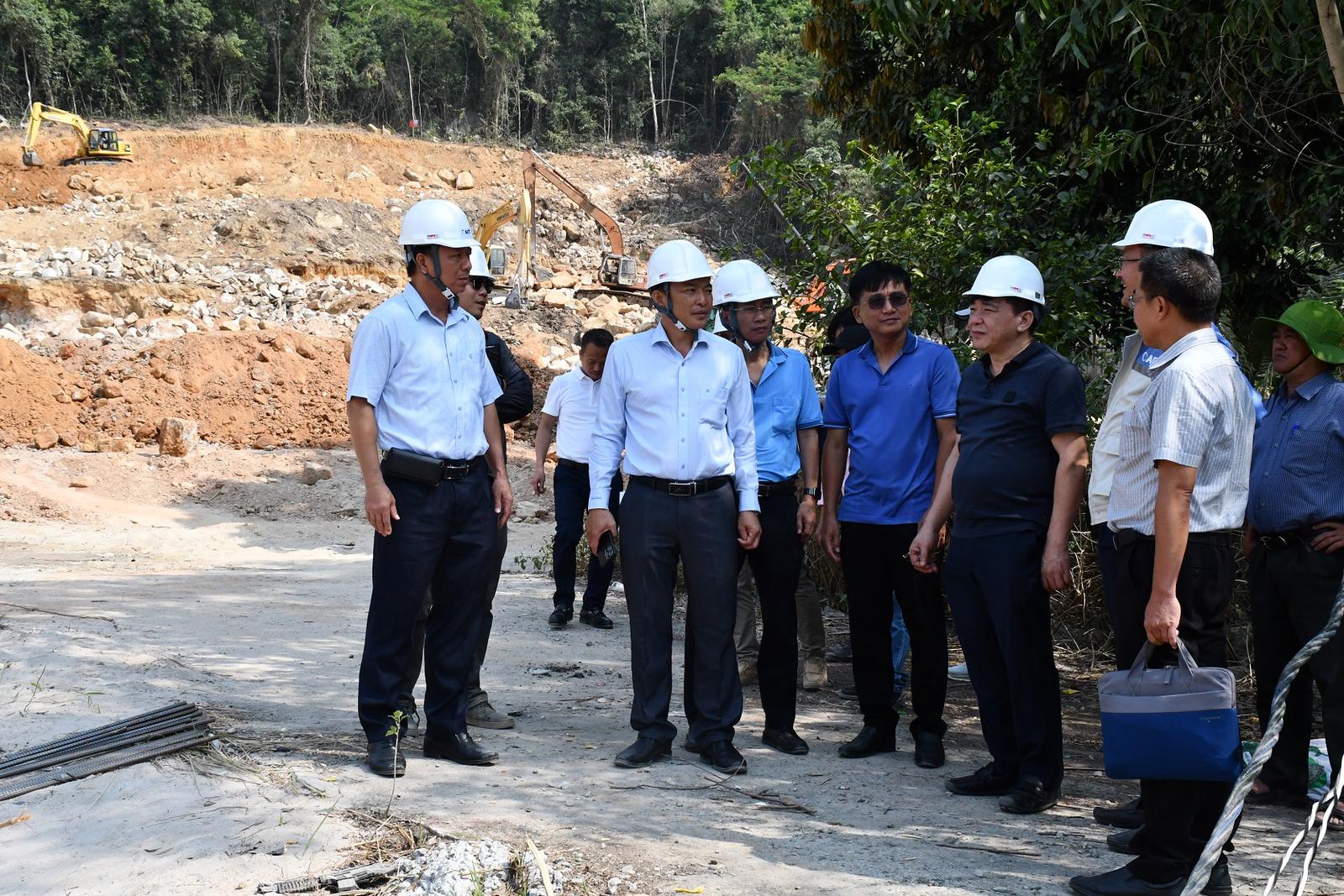 Chủ tịch HĐTV EVNSPC Lê Văn Trang (áo đen) kiểm tra công trường thi công các dự án. Ảnh: EVNSPC