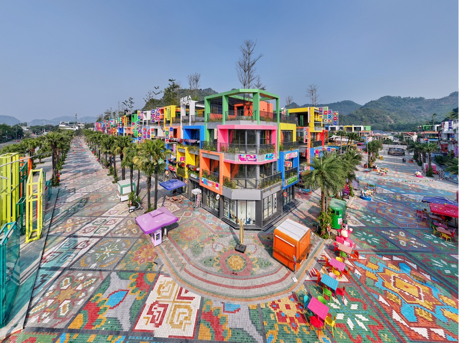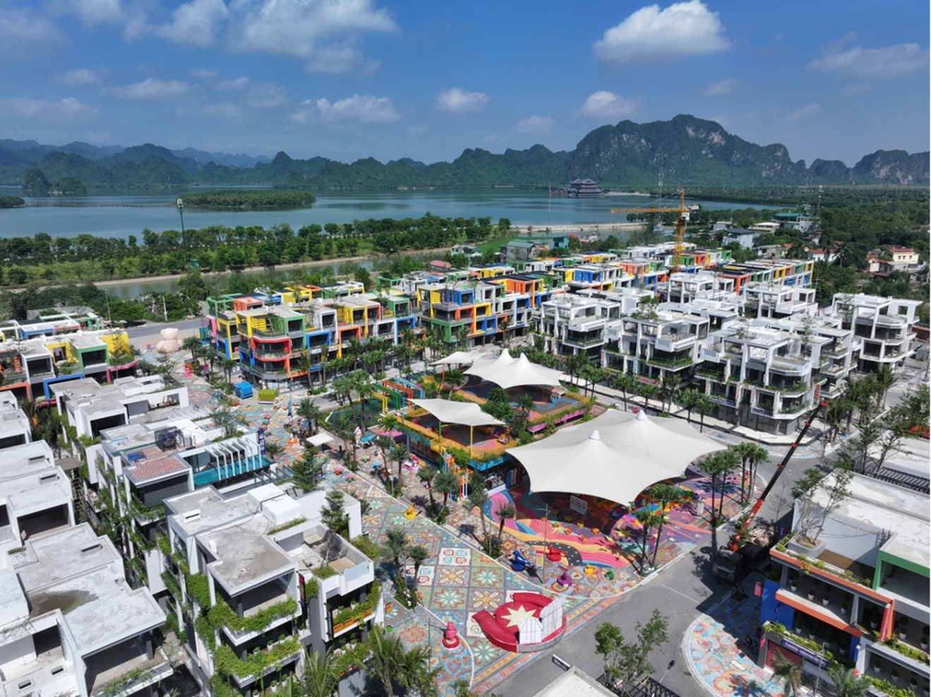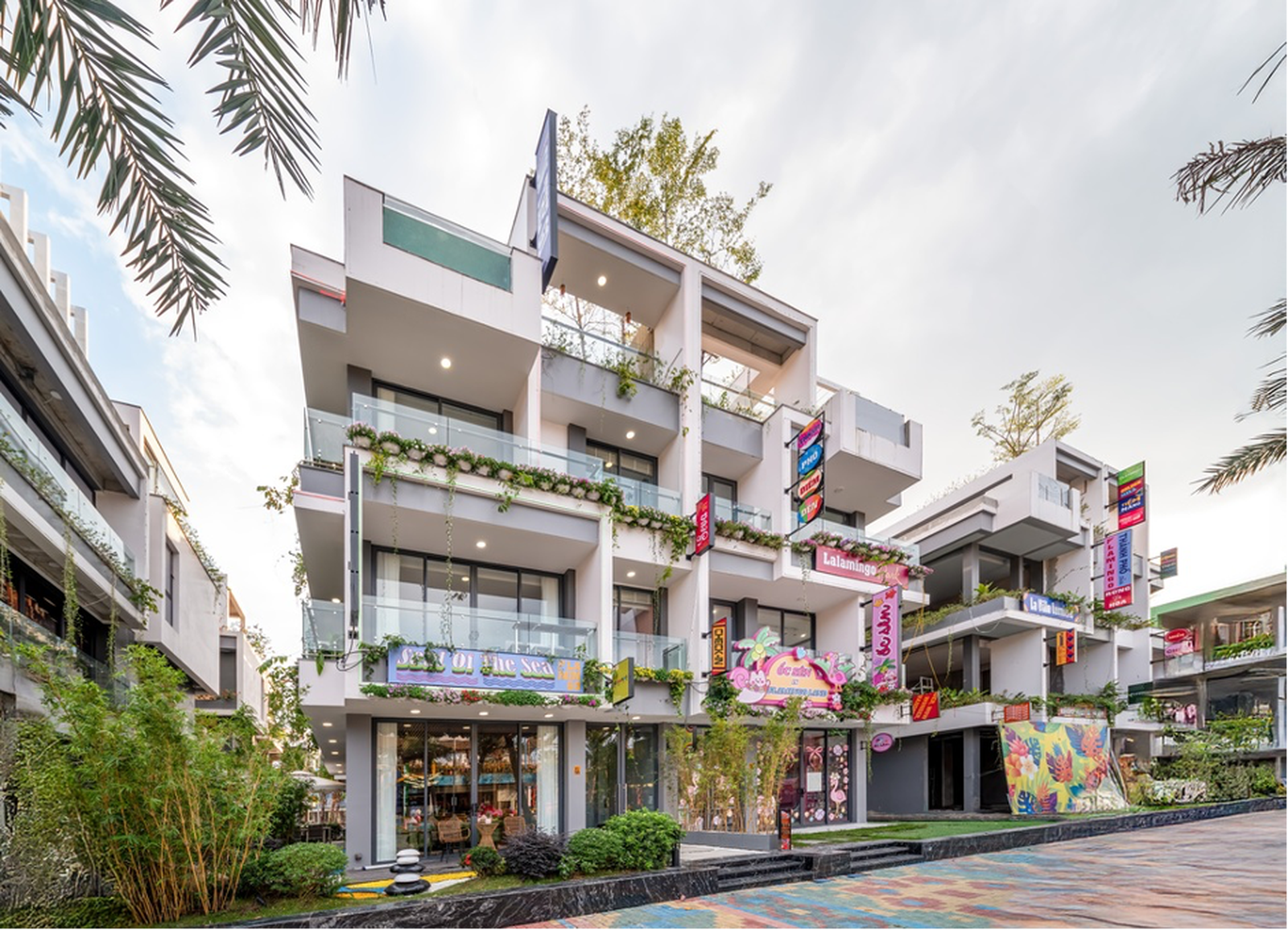 Các dãy phố thương mại với villa, villashop đầy màu sắc tại Flamingo Golden Hill.