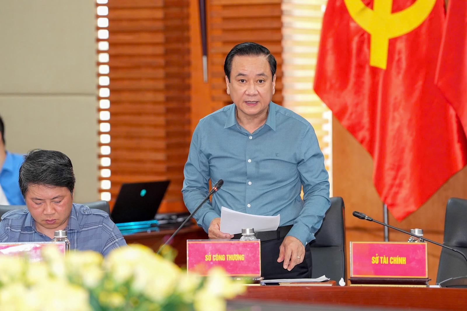 Giám đốc Sở Công thương Nguyễn Văn Thành báo cáo tại cuộc làm việc. Ảnh: TT