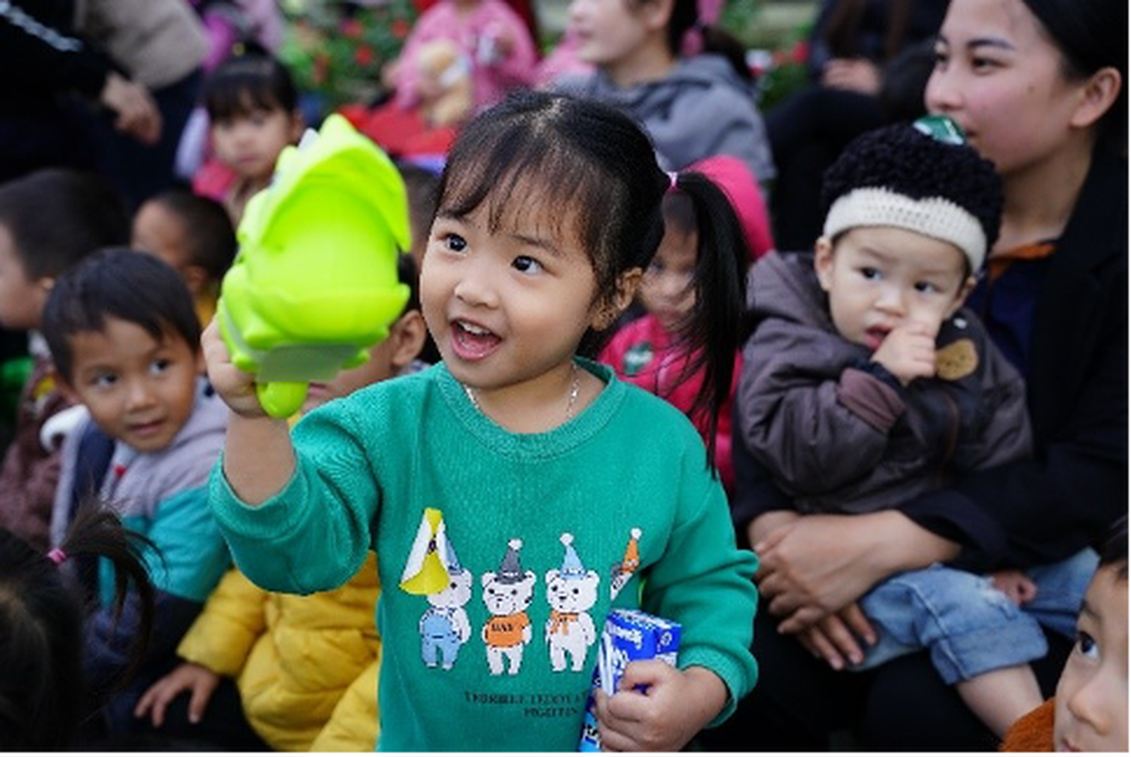 Ánh mắt sáng bừng cùng nụ cười trong veo của các cô bé, cậu bé mầm non khi được nhận những món quà đáng yêu từ Vinamilk.