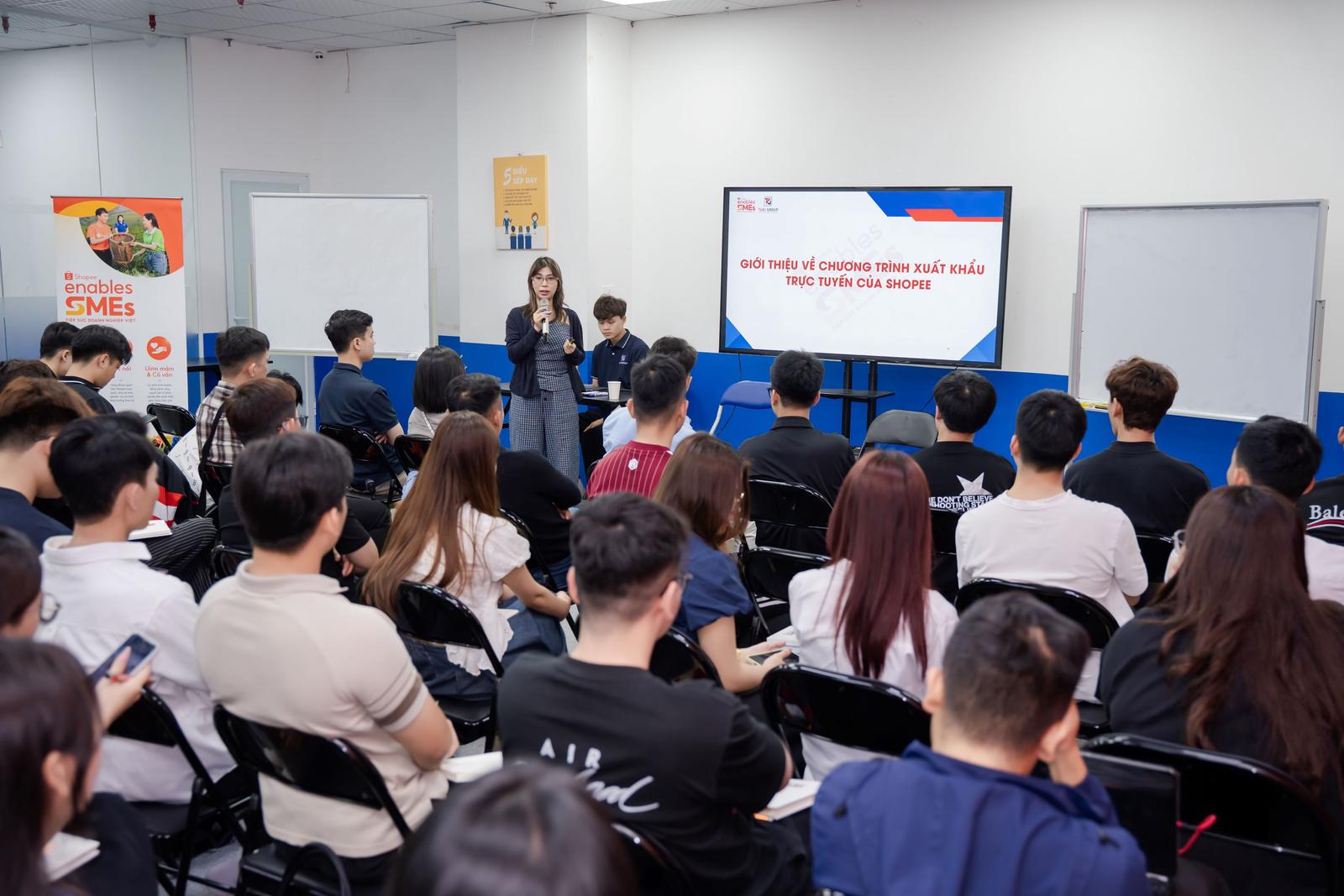 Buổi đào tạo có đội ngũ chuyên gia từ Shopee cập nhật những chương trình nổi bật của sàn cùng đối tác Shopee Enabler chia sẻ kinh nghiệm thực tiễn đến nhà bán. Ảnh: DN