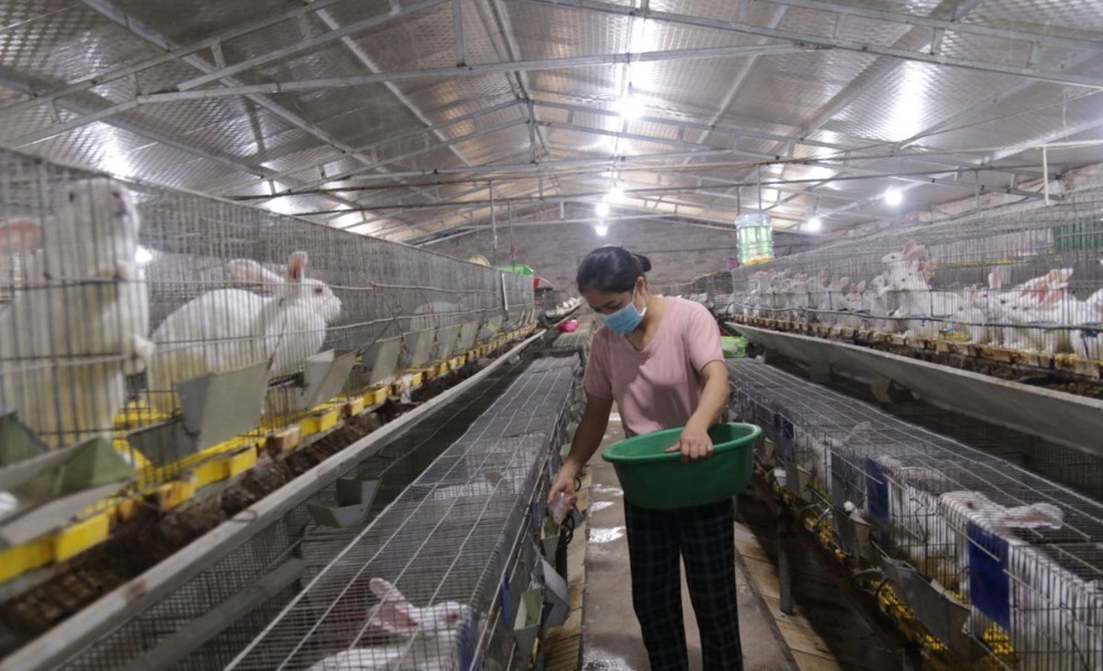 Chăm sóc thỏ tại HTX Sản xuất và dịch vụ nông nghiệp Hoàng Trung, xã Hoàng Đồng, thành phố Lạng Sơn. Ảnh: BLS