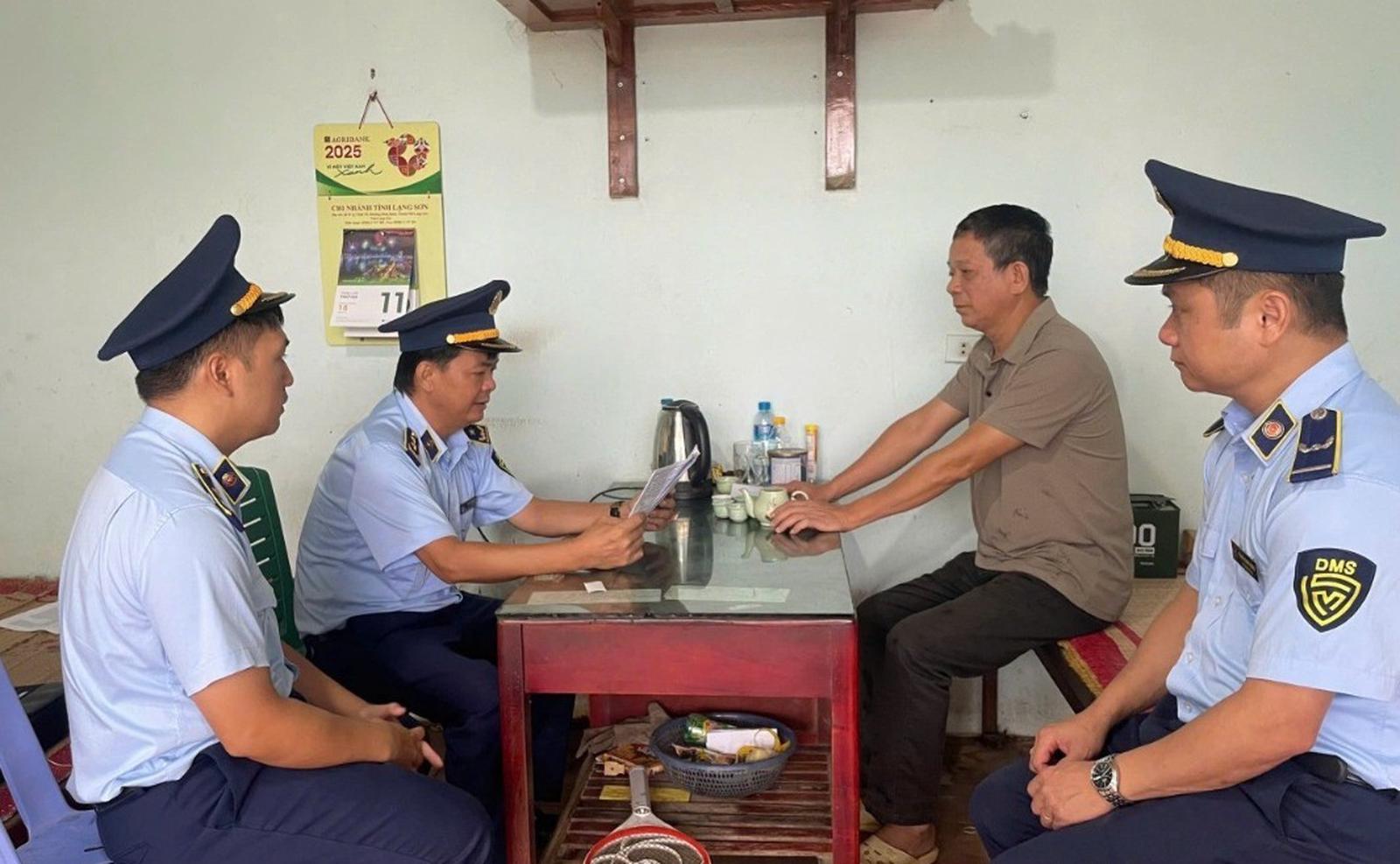 Cán bộ Đội QLTT số 4 công bố quyết định kiểm tra tại cửa hàng xăng dầu Yên Bình của Công ty TNHH MTV xăng dầu Như Tuấn. Ảnh: Quản lý hị trường Lạng Sơn