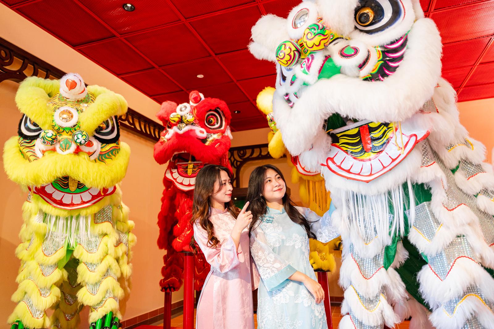 Bên cạnh không gian hoa mang hơi thở châu Âu, không gian trưng bày nghệ thuật Lân Sư Rồng tái hiện không khí Tết cổ truyền với múa lân, rước lân đầu năm và hoạt động vẽ mặt nạ truyền thống.