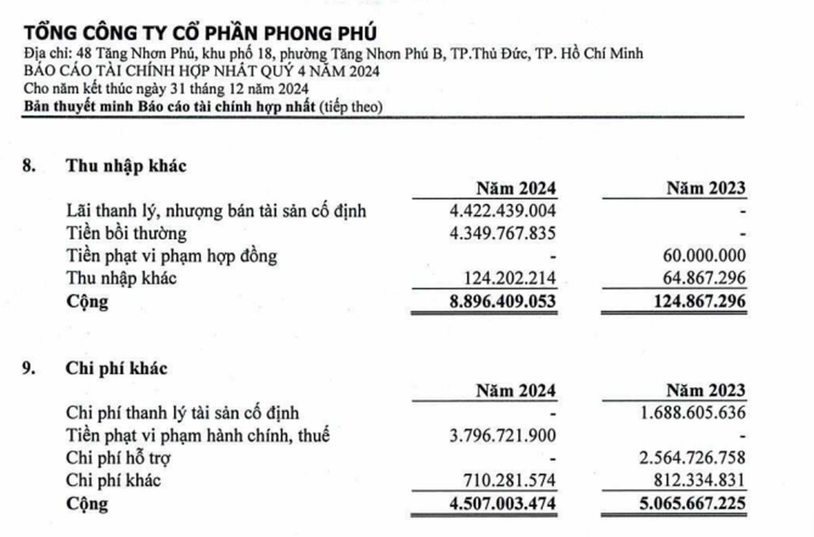 Phong Phú Corp gây chú ý khi bị phạt vi phạm hành chính, thuế hơn 3,7 tỷ đồng. Ảnh: Trích chụp báo cáo tài chính quý 4/2024 của PPH.