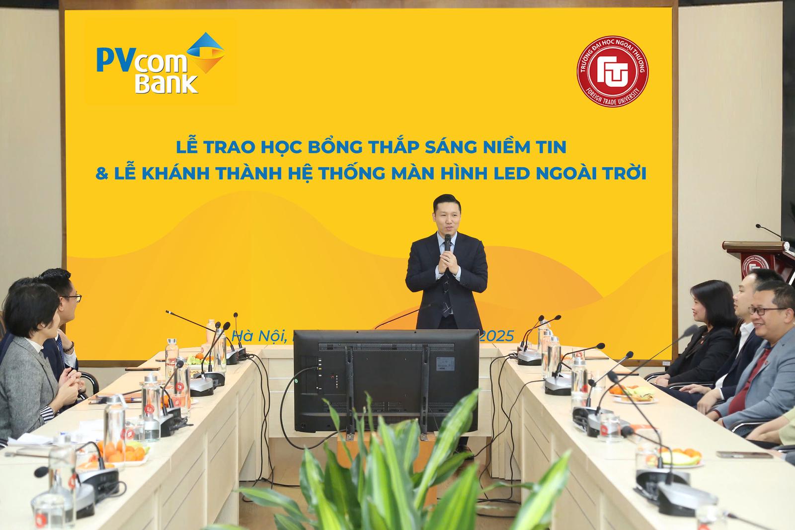 (Thanh tra) - Sáng ngày 06/3/2025, tại Trường Đại học Ngoại thương, Ngân hàng TMCP Đại Chúng Việt Nam (PVcomBank) đã trao tặng ba suất học bổng "Thắp Sáng Niềm Tin" với tổng giá trị 300.000.000 triệu đồng cho 03 sinh viên có hoàn cảnh khó khăn đang theo học tại trường. Chương trình không chỉ thể hiện trách nhiệm xã hội của PVcomBank mà còn là nguồn động viên to lớn giúp các em sinh viên tiếp tục nỗ lực trên con đường chinh phục tri thức.
