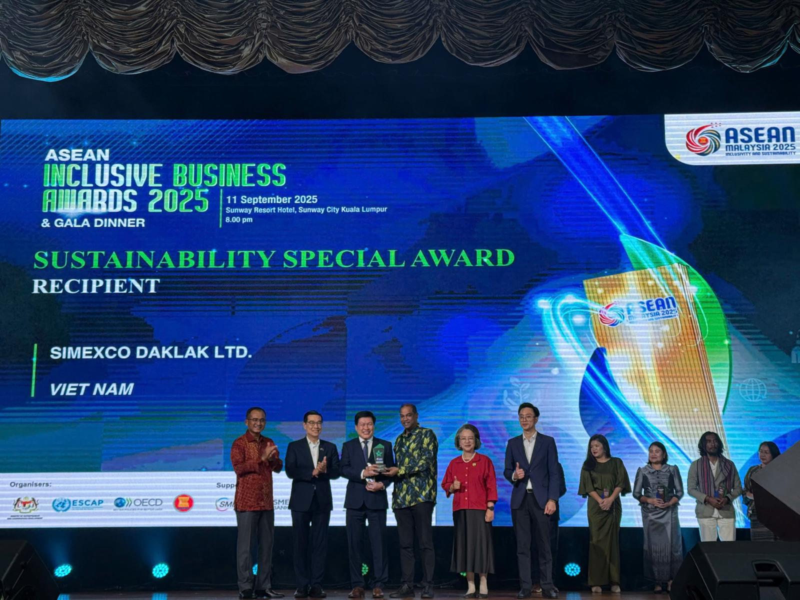 Ngày 11/9, tại Diễn đàn Doanh nghiệp Bao trùm ASEAN lần thứ 8 diễn ra ở Kuala Lumpur, Malaysia, Công ty TNHH MTV Xuất nhập khẩu 2-9 Đắk Lắk (Simexco Daklak) đã vinh dự được xướng tên hai lần, trở thành doanh nghiệp duy nhất đại diện Việt Nam trong khối 10 quốc gia ASEAN được công nhận là Doanh nghiệp Kinh doanh Bao trùm ASEAN năm 2025.