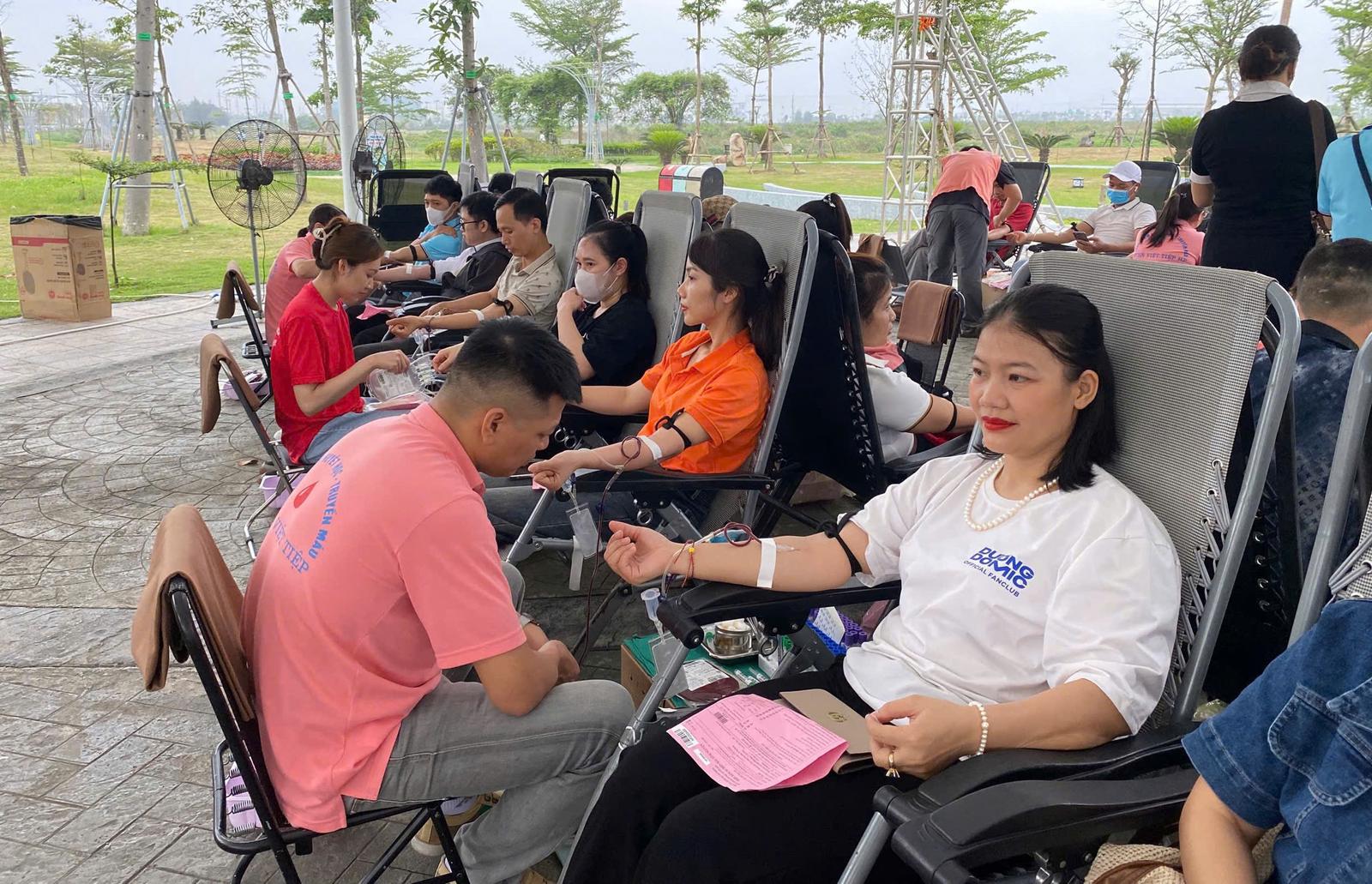 Nhiều người lao động đăng ký tham gia hiến máu tại chương trình. Ảnh: KT