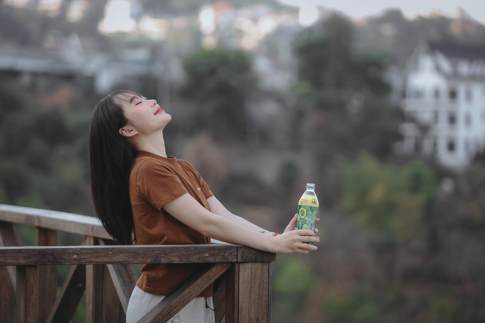 Giữa cao nguyên xanh mướt, nơi những đồi chè ôm trọn sương mù, cô thả lỏng từng giác quan, nhấp ngụm trà xanh mát lạnh giữa núi rừng lộng gió. Hương trà thiên nhiên quyện trong không khí se lạnh, lan qua từng hơi thở, để lại dư vị thanh mát như nút “refresh” cho tâm trí, giải nhiệt cuộc sống, mang lại cảm giác tươi mới đến lạ.