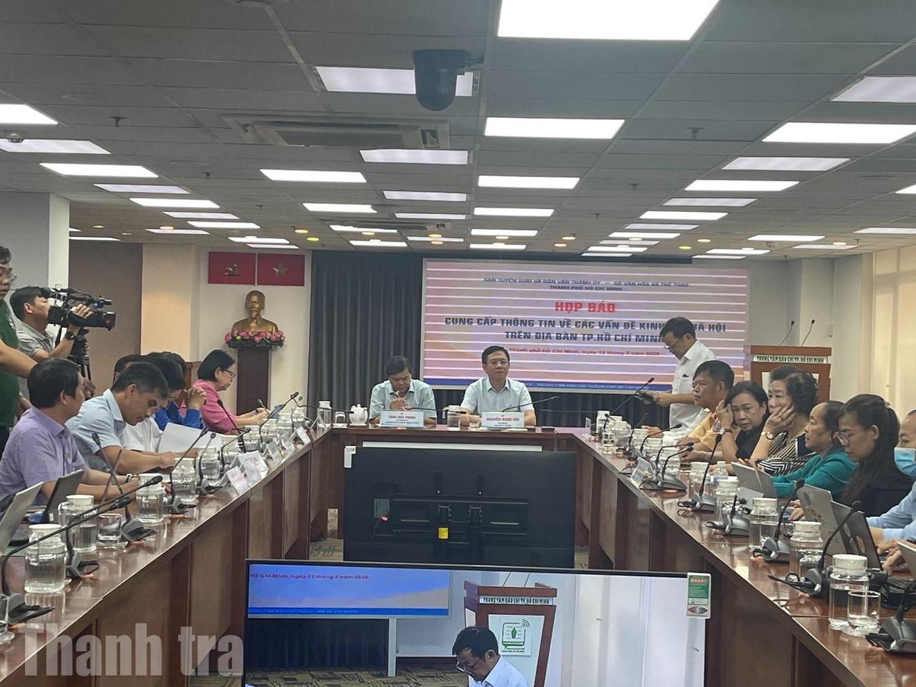 Buổi họp báo thông tin về các vấn đề kinh tế - xã hội trên địa bàn TPHCM. Ảnh: Thu Huyền