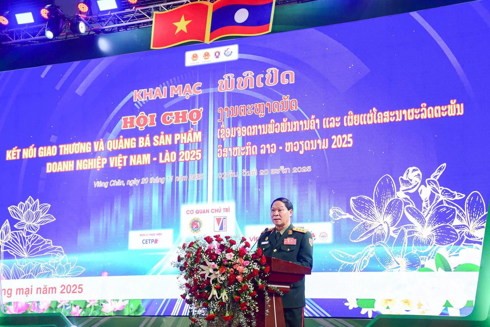 Hội chợ “Kết nối giao thương và quảng bá sản phẩm doanh nghiệp Việt Nam - Lào 2025” là một hoạt động thuộc Chương trình cấp quốc gia về xúc tiến thương mại năm 2025. Tham dự Lễ khai mạc có Thượng tướng Nguyễn Trường Thắng, Ủy viên Trung ương Đảng, Thứ trưởng Bộ Quốc phòng Việt Nam và Thượng tướng Vongsone Inpanphim, Thứ trưởng Bộ Quốc phòng, Chủ nhiệm Tổng cục Chính trị Quân đội Nhân dân Lào, cùng với Đại sứ đặc mệnh toàn quyền Việt Nam tại Lào Nguyễn Minh Tâm và đại diện lãnh đạo các bộ, ngành hai nước.