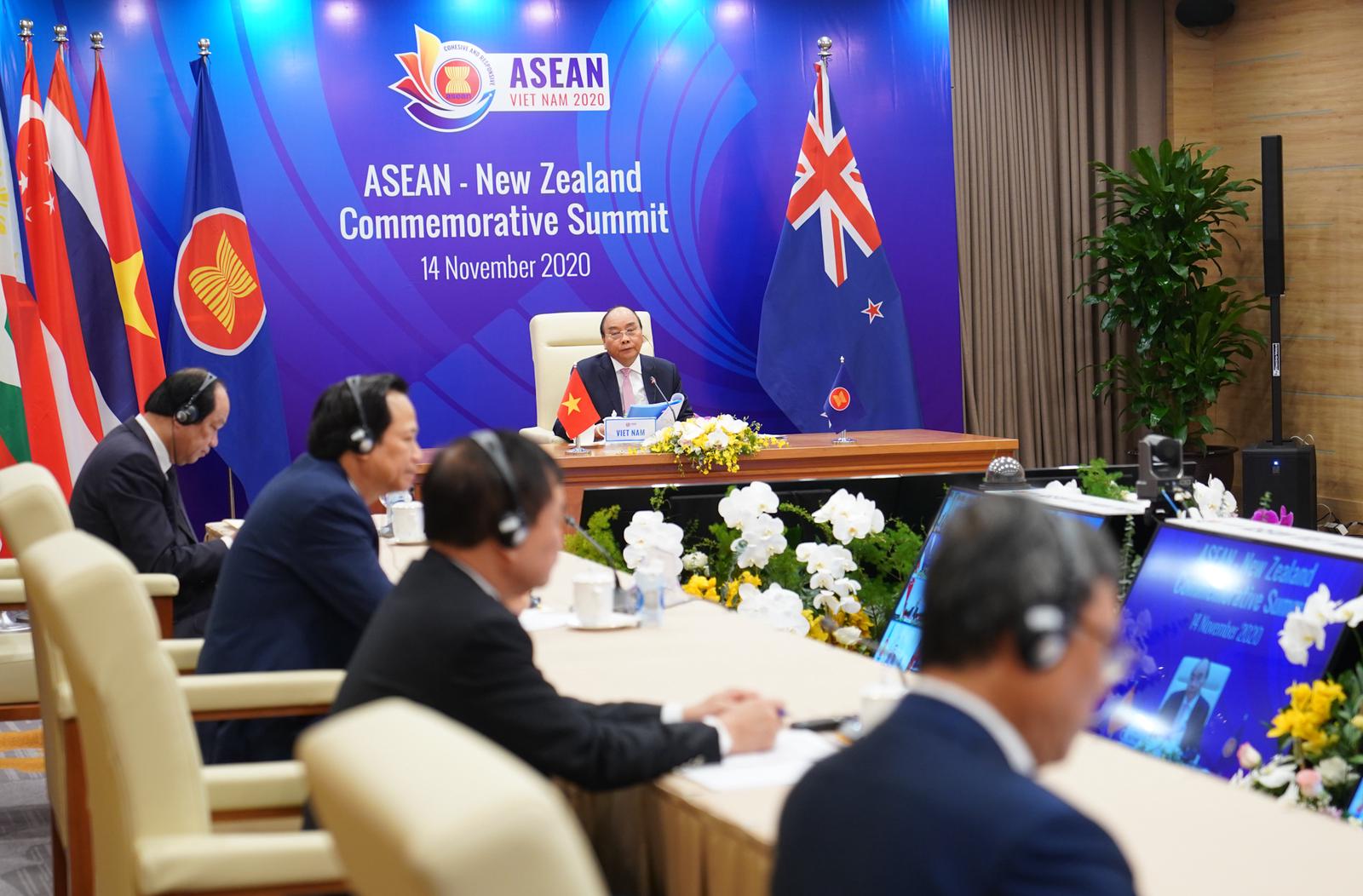 ASEAN – New Zealand: Tái mở cửa thị trường Tại Hội nghị Cấp cao kỷ niệm 45 năm quan hệ ASEAN – New Zealand sáng ngày 14/11, bà Jacinda Ardern, Thủ tướng New Zealand đã công bố đóng góp 1 triệu USD cho Quỹ ASEAN ứng phó COVID-19, dành 12 triệu USD hỗ trợ cho nỗ lực ứng phó dịch bệnh trong khu vực, hỗ trợ 10 triệu USD cho nông nghiệp thông minh, thích ứng với biến đổi khí hậu và 5 triệu USD cho hoạt động của Ủy hội Mê Công. ASEAN hiện là đối tác thương mại lớn thứ 4 của New Zealand, thương mại hai chiều sau 45 năm tăng hơn 142 lần, đạt 12,5 tỷ USD trong năm 2019. Ảnh: CTV Bày tỏ quan ngại sâu sắc về những tác động tiêu cực của đại dịch COVID-19, ASEAN đánh giá cao New Zealand cam kết hỗ trợ ASEAN hợp tác trong nghiên cứu, phát triển vắc - xin hiệu quả để người dân có thể tiếp cận rộng rãi. Hai bên cũng nhất trí từng bước tái mở cửa thị trường, thuận lợi hóa thương mại, khắc phục đứt gãy chuỗi cung ứng và gia tăng giá trị kinh tế-thương mại. Trên cơ sở đó, các bên cho rằng cần hướng tới nâng cấp Hiệp định thương mại tự do ASEAN - Australia – New Zealand, bổ trợ cho Hiệp định Đối tác Toàn diện và Tiến bộ xuyên Thái Bình Dương (CPTPP). Kết thúc Hội nghị, hai bên đã thông qua Tuyên bố chung về Tầm nhìn của các nhà Lãnh đạo ASEAN – New Zealand nhân kỷ niệm 45 năm Quan hệ đối thoại với chủ đề: Một Di sản hợp tác, Một Tương lai chung.