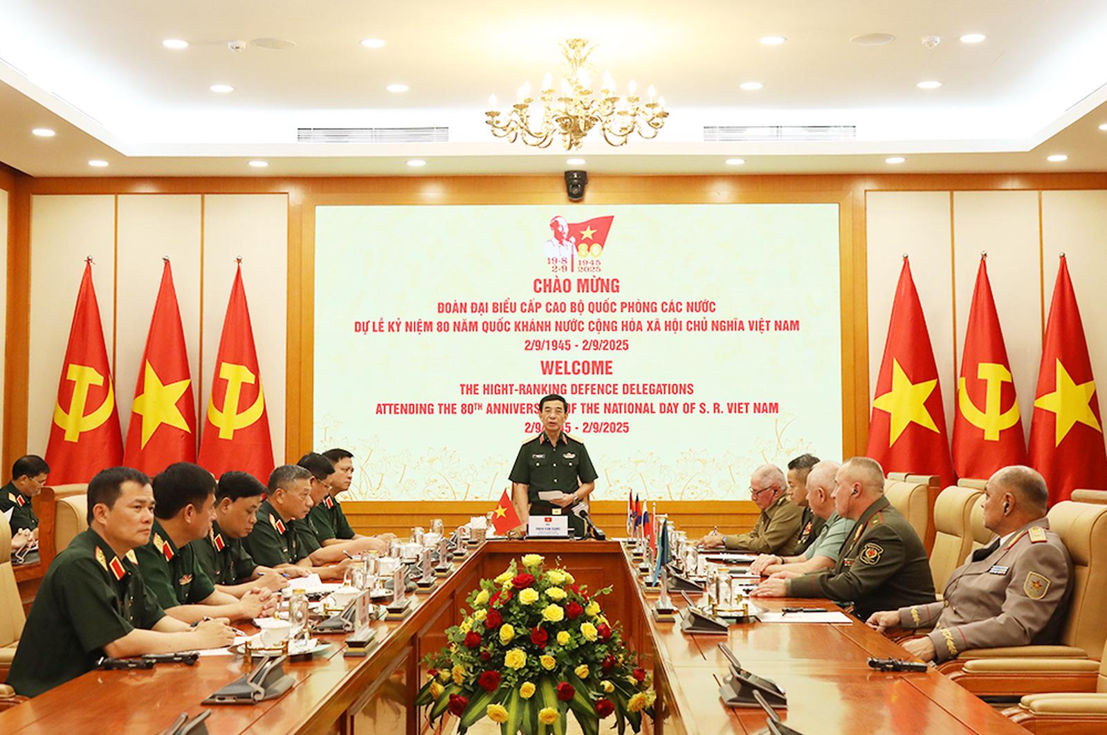 (Thanh tra) - Chiều ngày 1/9, tại Trụ sở Bộ Quốc phòng, Đại tướng Phan Văn Giang, Bộ trưởng Bộ Quốc phòng, đã nhiệt liệt tiếp đón các Đoàn đại biểu cấp cao quân đội các nước tham dự Lễ kỷ niệm 80 năm Quốc khánh nước Cộng hòa XHCN Việt Nam (02/9/1945 - 02/9/2025), khẳng định ý nghĩa sâu sắc của sự kiện đối với Việt Nam và mối quan hệ hữu nghị quốc tế.