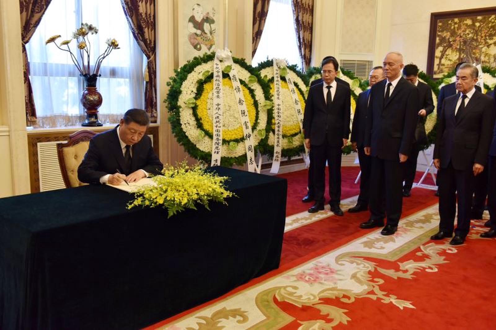 Tổng Bí thư, Chủ tịch nước Trung Quốc Tập Cận Bình ghi sổ tang trước việc Tổng Bí thư Nguyễn Phú Trọng từ trần. Ảnh: BNG