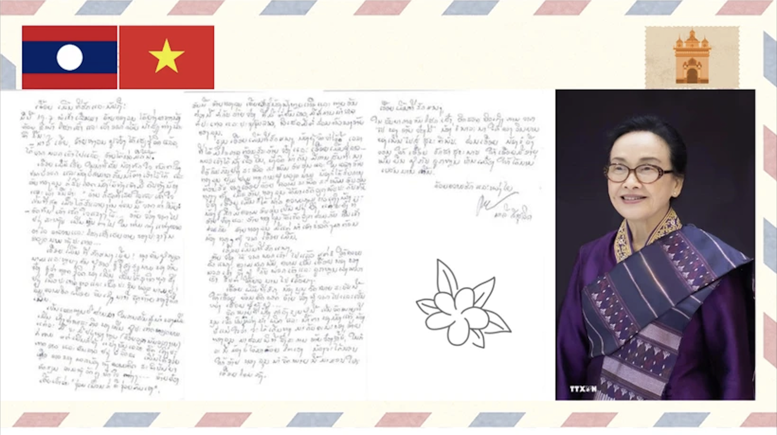 Lá thư của bà Naly Sisoulith, Phu nhân Tổng Bí thư, Chủ tịch nước Lào Thongloun Sisoulith. Ảnh: TTXVN