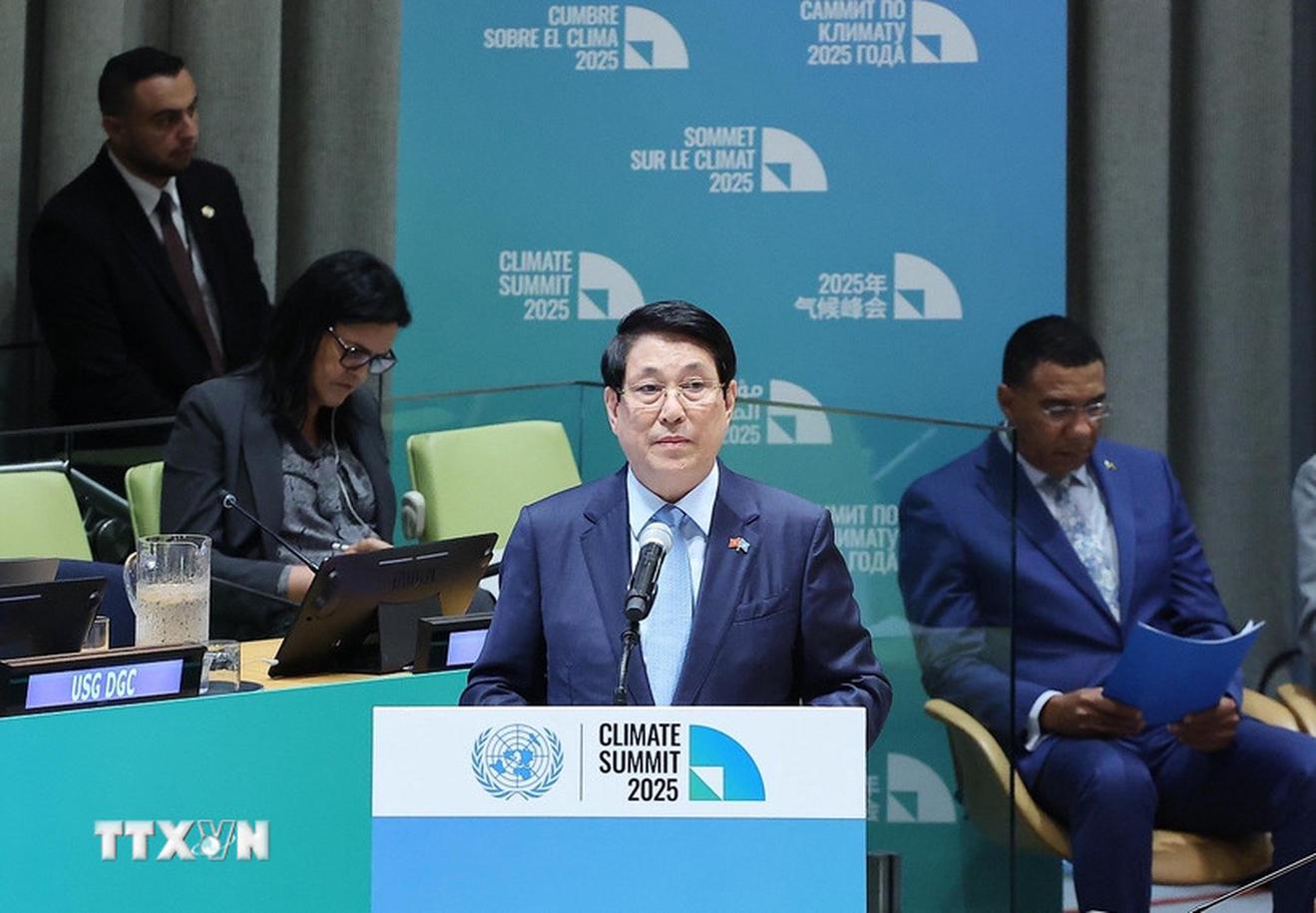 Chủ tịch nước Lương Cường phát biểu tại sự kiện cấp cao toàn cầu đặc biệt về Hành động khí hậu. Ảnh: Lâm Khánh/TTXVN