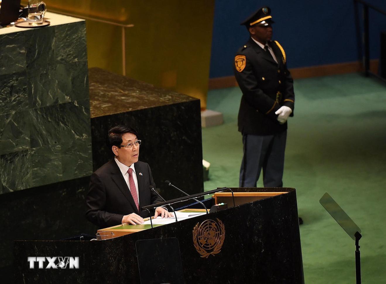 Khẳng định hòa bình vừa là mục tiêu, vừa là điều kiện tiên quyết cho xây dựng tương lai ổn định, công bằng, dân chủ và phát triển thịnh vượng, Chủ tịch nước kêu gọi các nước tuân thủ Hiến chương LHQ.