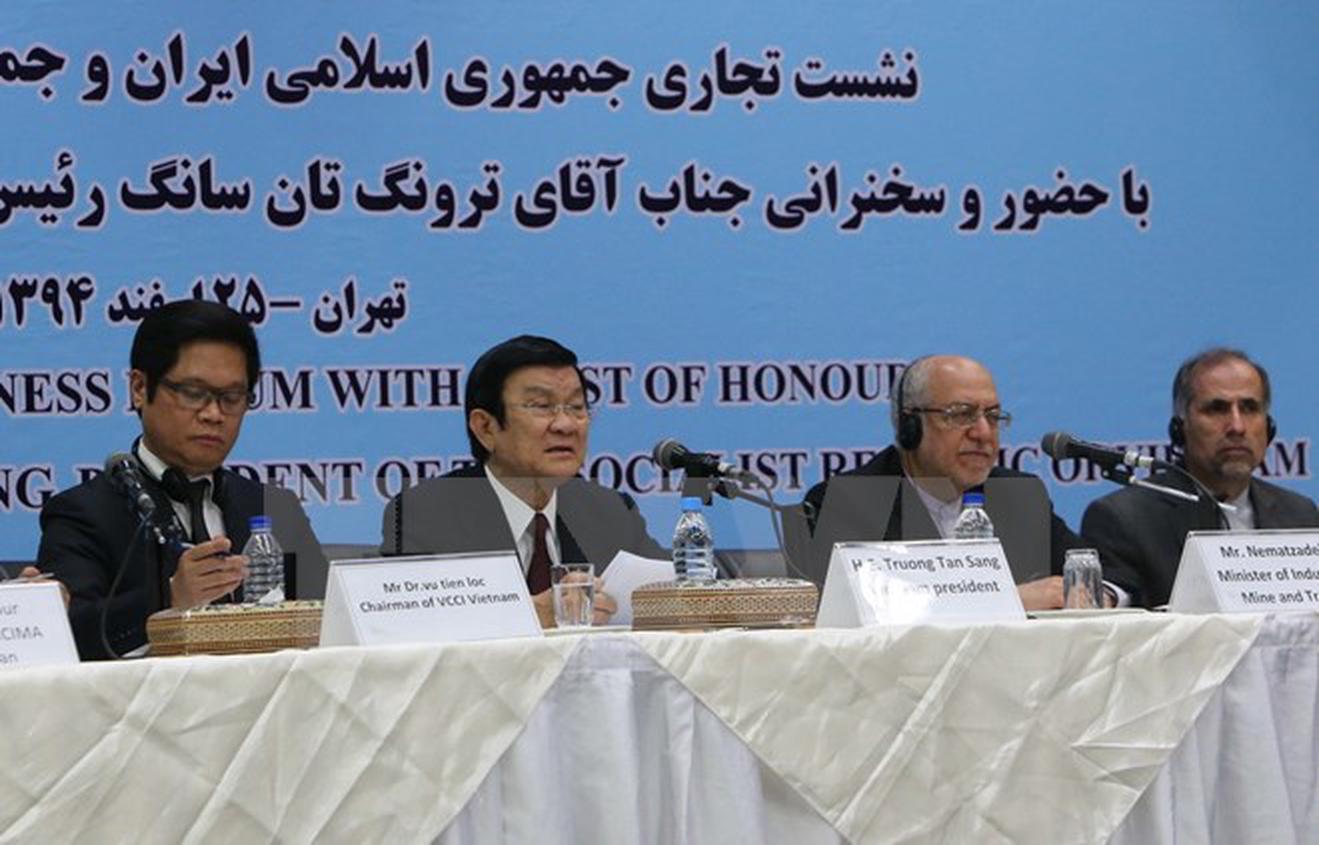 Theo đặc phái viên TTXVN, ngày 15/3, tại Tehran của Iran, Chủ tịch nước Trương Tấn Sang đã dự và phát biểu khai mạc Diễn đàn Doanh nghiệp Việt Nam-Iran do Phòng Thương mại và Công nghiệp Việt Nam (VCCI) phối hợp với Cơ quan Xúc tiến đầu tư Iran (TPO) tổ chức.