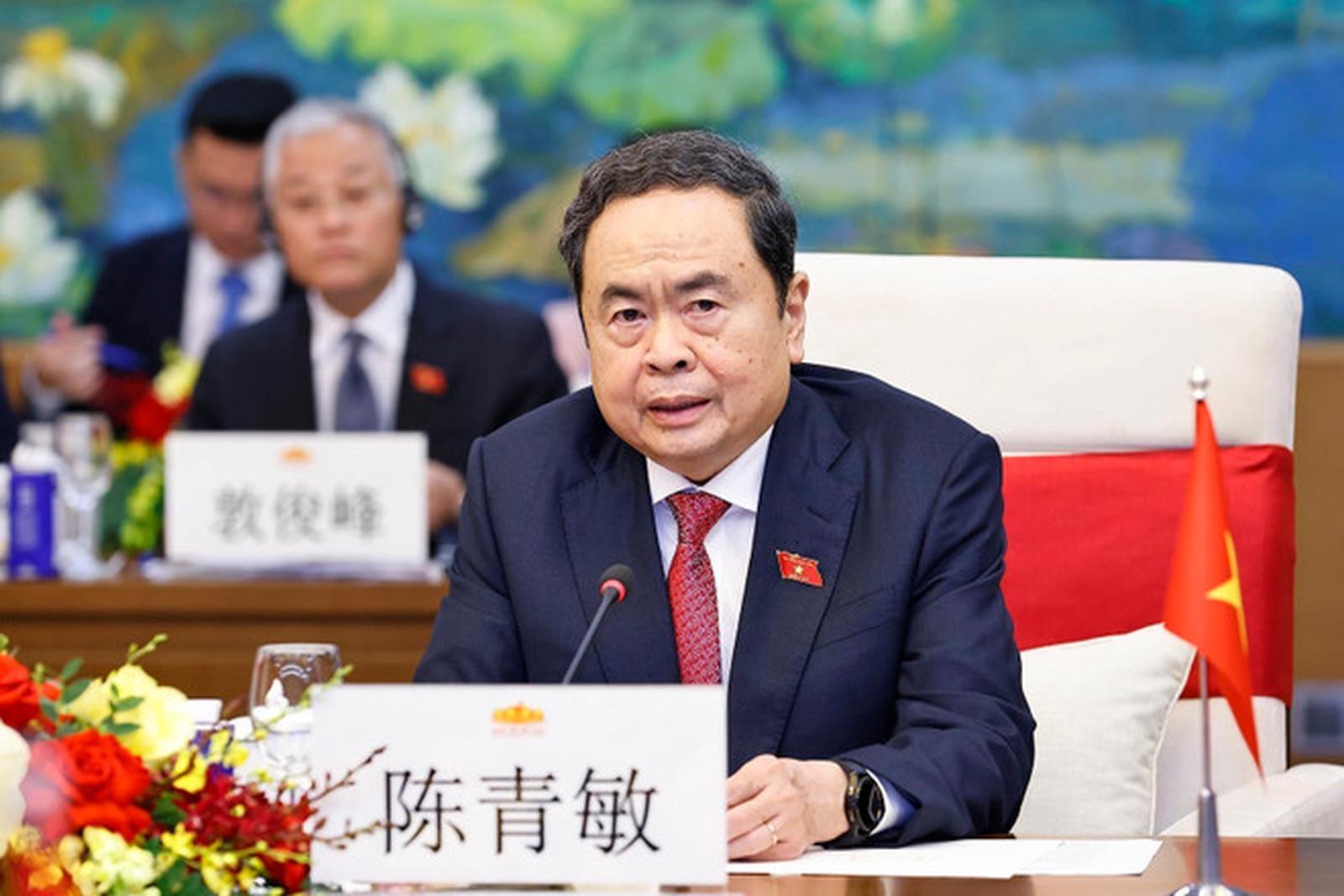 Chúc mừng những thành tựu to lớn của Trung Quốc những năm qua, Chủ tịch Quốc hội Trần Thanh Mẫn bày tỏ tin tưởng Đảng Cộng sản Trung Quốc, do Tổng Bí thư, Chủ tịch nước Tập Cận Bình là hạt nhân, sẽ lãnh đạo nhân dân Trung Quốc hoàn thành mục tiêu “100 năm thứ hai," trở thành cường quốc xã hội chủ nghĩa hiện đại, giàu mạnh, dân chủ, văn minh, hài hòa và tươi đẹp; khẳng định Việt Nam luôn coi trọng và ưu tiên hàng đầu phát triển quan hệ với Trung Quốc.