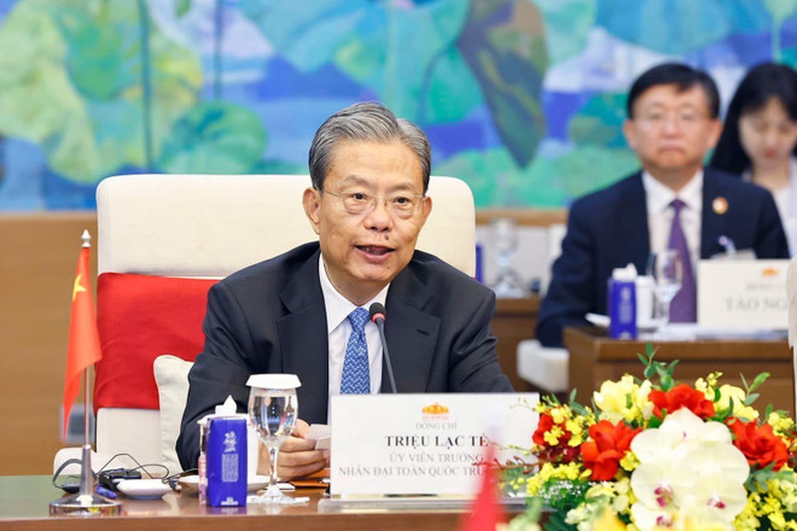 Đánh giá cao và tán thành với những đề xuất hợp tác của Chủ tịch Quốc hội Trần Thanh Mẫn, Ủy viên trưởng Triệu Lạc Tế nhấn mạnh, Trung Quốc sẵn sàng cùng Việt Nam cụ thể nhận thức chung giữa hai Tổng Bí thư, đưa quan hệ hai Đảng, hai nước phát triển theo định hướng “6 hơn.”