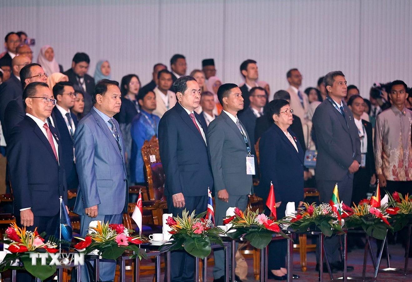Chủ tịch Quốc hội Trần Thanh Mẫn và đại biểu thực hiện nghi thức tại Lễ khai mạc Đại hội đồng AIPA-46. Ảnh: Doãn Tấn/TTXVN