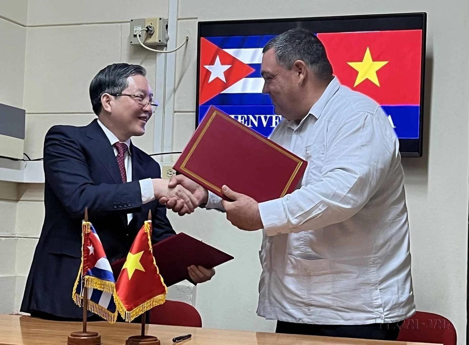 Hội Nông dân Việt Nam và Hội Tiểu nông Cuba ký Biên bản ghi nhớ hợp tác giai đoạn 2025-2030 tại Cuba. (Ảnh: Mai Phương/TTXVN)