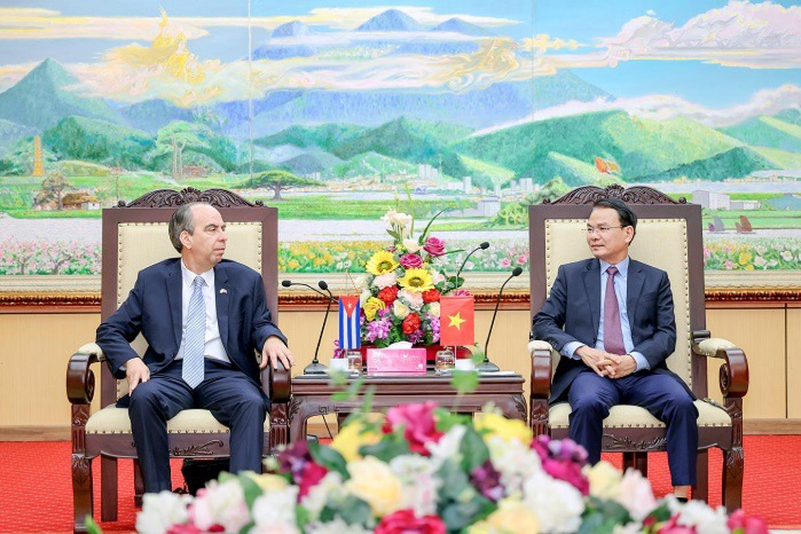 Bí thư Tỉnh ủy Vĩnh Phúc Đặng Xuân Phong tiếp và làm việc với Đại sứ đặc mệnh toàn quyền Cuba tại Việt Nam. Ảnh: Khánh Linh