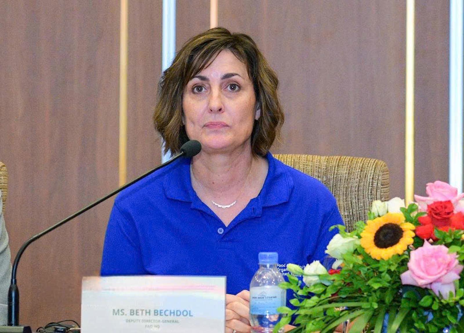 Bà Beth Bechdol, Phó Tổng Giám đốc Tổ chức Lương thực và Nông nghiệp Liên hợp quốc phát biểu tại buổi đến thăm và làm việc tại Ninh Bình. Ảnh: BNB.