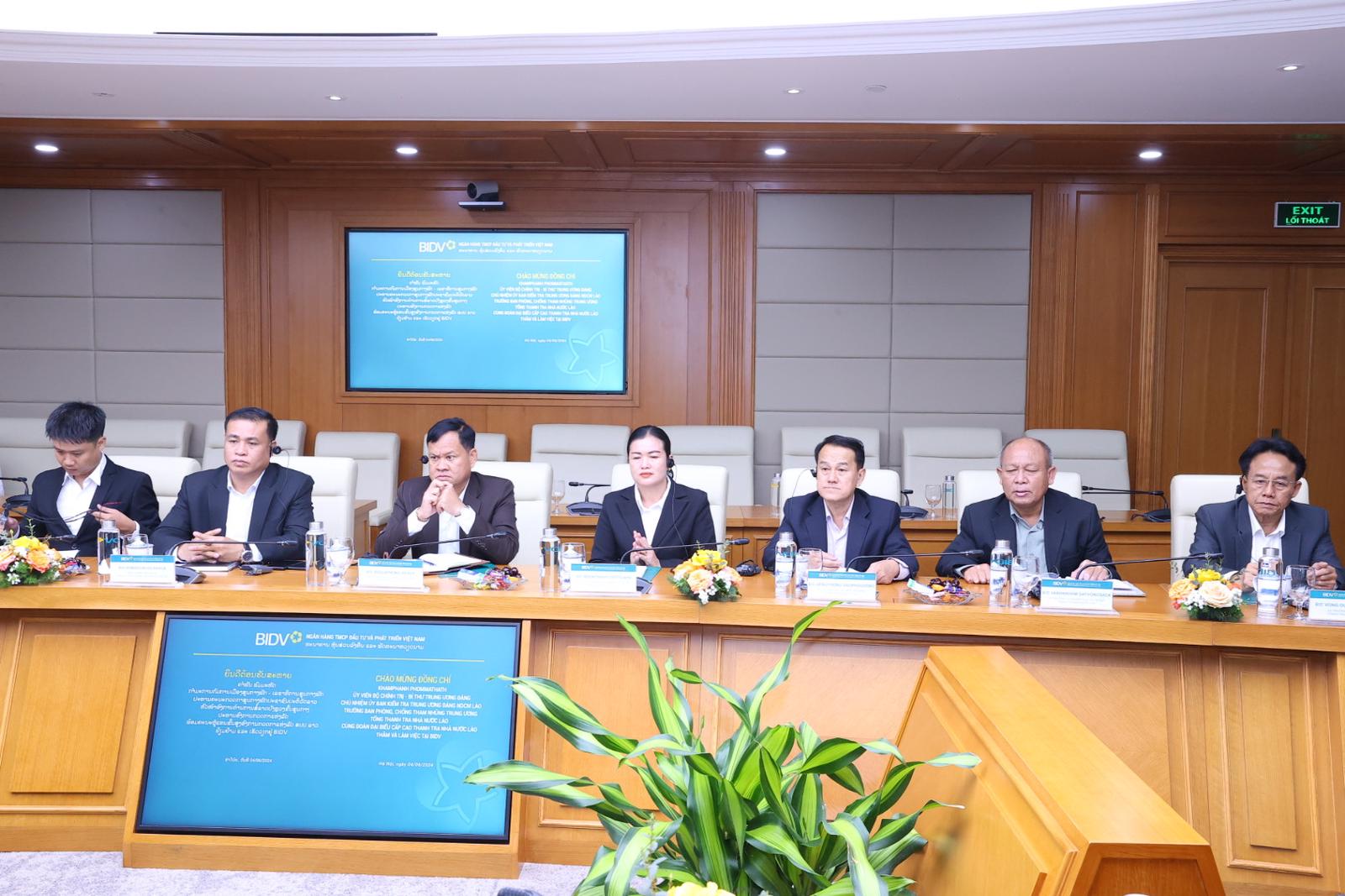 Đoàn Đại biểu Cấp cao Thanh tra Nhà nước Lào làm việc tại BIDV. Ảnh: TH