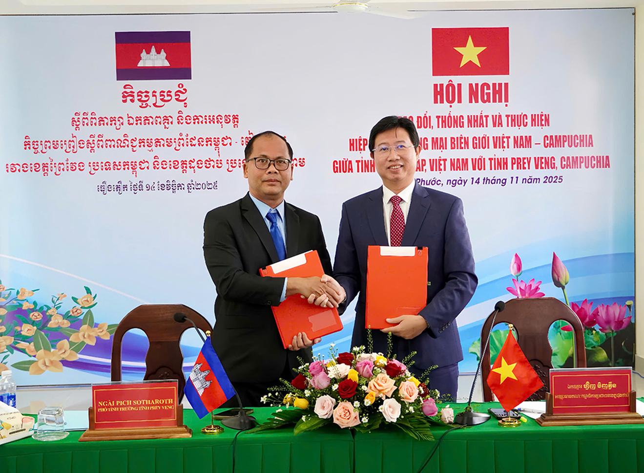 Trong 9 tháng đầu năm 2025, tổng kim ngạch xuất nhập khẩu hàng hoá của Đồng Tháp qua biên giới đạt hơn 984 triệu USD. Tình hình an ninh, trật tự trên tuyến biên giới Đồng Tháp – Prey Veng được đảm bảo ổn định. Lực lượng chức năng hai bên biên giới phối hợp tuần tra, kiểm soát tốt tuyến biên giới, bảo đảm an toàn đường biên, cột mốc.