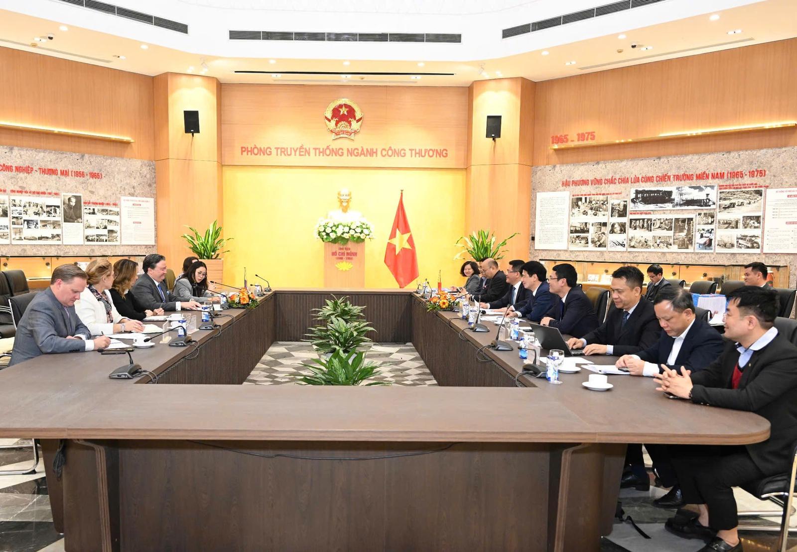 Bộ trưởng Bộ Công Thương Nguyễn Hồng Diên trong buổi làm việc với Đại sứ Hoa Kỳ tại Việt Nam. Ảnh: BCT