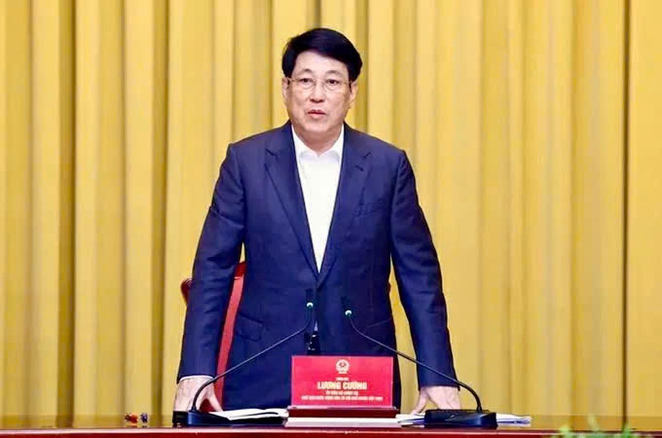 Chủ tịch nước Lương Cường phát biểu tại buổi làm việc với lãnh đạo Bộ Ngoại giao. Ảnh: TTXVN