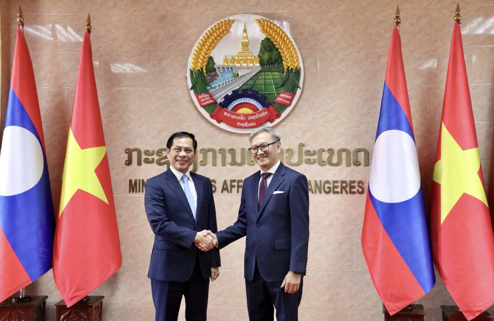 Phó Thủ tướng, Bộ trưởng Ngoại giao Bùi Thanh Sơn và Bộ trưởng Ngoại giao Thongsavanh Phomvihane. Ảnh: N.G