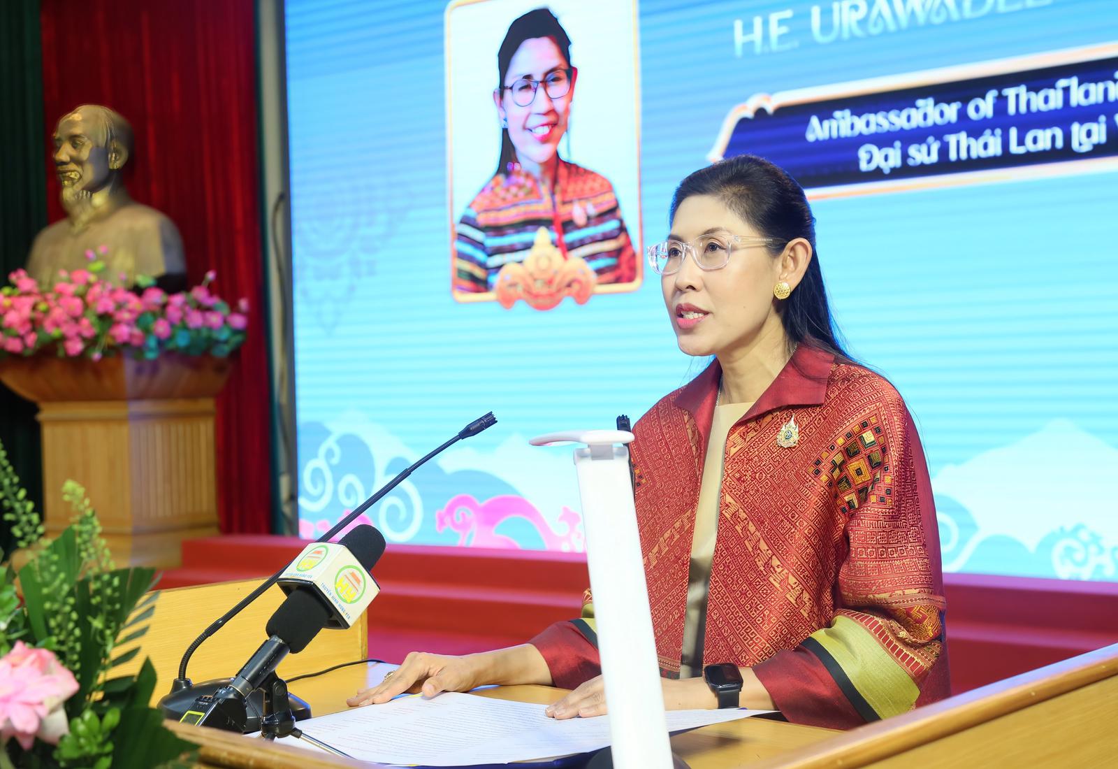 Bà Urawadee Sriphiromya, Đại sứ Đặc mệnh toàn quyền Vương quốc Thái Lan tại Việt Nam phát biểu tại diễn đàn. Ảnh: TĐ