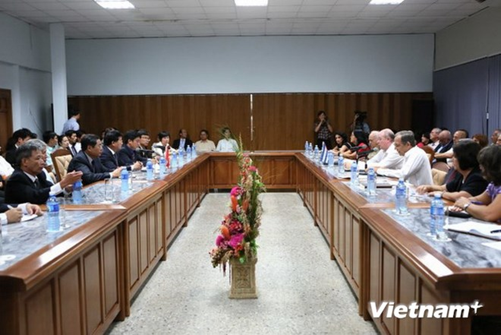 Phát biểu khai mạc kỳ họp, Bộ trưởng Malmierca đánh giá cao mối quan hệ hợp tác giữa Cuba và Việt Nam trong nhiều năm qua, đồng thời khẳng định trên tinh thần chuyến thăm hữu nghị chính thức Cuba của Thủ tướng Nguyễn Tấn Dũng hồi tháng 3/2014, hai nước đã cam kết tiếp tục củng cố mối quan hệ thủy chung, tình hữu nghị anh em truyền thống, đồng thời mở rộng hơn nữa hợp tác trong các lĩnh vực kinh tế, thương mại và đầu tư. Ngoài ra, với việc ký kết Chương trình Kinh tế Song phương trung hạn, hai bên đã xác định những mục tiêu cụ thể và phương hướng hợp tác song phương trong 5 năm tới, qua đó góp phần mở rộng và đa dạng hóa mối quan hệ kinh tế và thương mại.Sau khi điểm lại những nét chính về tình hình thực hiện những thỏa thuận tại kỳ họp trước, Bộ trưởng Malmierca cho rằng mặc dù quan hệ thương mại song phương phát triển tích cực trong những năm qua song vẫn chưa tương xứng với tiềm năng của cả hai nước và chính vì vậy Chính phủ Cuba và Việt Nam đều quyết tâm tìm phương hướng đưa quan hệ kinh tế thương mại song phương lên ngang tầm với mối quan hệ chính trị như mong muốn của lãnh đạo cấp cao hai nước.Chủ tịch phân ban Cuba-Việt Nam cho biết hiện nay Việt Nam là đối tác thương mại lớn thứ hai của Cuba ở khu vực châu Á, đặc biệt Việt Nam là nước cung cấp gạo hàng đầu cho Cuba, một trong những lương thực không thể thiếu đối với người dân quốc đảo này. Ông cũng bày tỏ cảm ơn phía Việt Nam đã hợp tác chặt chẽ với Cuba trong sản xuất lúa gạo và một số loại cây có hạt khác. Bộ trưởng Malmierca cũng khẳng định mong muốn của phía Cuba trong việc hợp tác song phương để các nhà đầu tư Việt Nam có mặt nhiều hơn tại Cuba trong các lĩnh vực ưu tiên đầu tư nước ngoài của Cuba như dầu khí, du lịch và công nghiệp, cũng như tại Khu phát triển đặc biệt Mariel mà Cuba mới khánh thành hồi đầu năm nay.Bộ trưởng Malmierca nhấn mạnh năm 2015 sẽ đánh dấu một mốc quan trọng trong quan hệ song phương khi hai nước kỷ niệm 55 năm thiết lập quan hệ ngoại giao và việc cùng nhau thực hiện thắng lợi những mục tiêu chung trong chương trình hợp tác song phương sẽ là món quà ý nghĩa nhất để kỷ niệm sự kiện đặc biệt này, qua đó khẳng định mối quan hệ lịch sử trên cơ sở đoàn kết và hỗ trợ lẫn nhau mà Đảng, Chính phủ và nhân dân hai nước đã vun đắp trong nhiều thập kỷ qua.Về phần mình, Bộ trưởng Xây dựng Trịnh Đình Dũng khẳng định lập trường trước sau như một của Việt Nam là ủng hộ sự nghiệp cách mạng của nhân dân Cuba, đồng thời nêu bật những tình cảm đoàn kết, sự ủng hộ và giúp đỡ quý báu của Cuba đối với sự nghiệp giải phóng đất nước trước kia và xây dựng một nước Việt Nam giàu mạnh, công bằng, dân chủ và văn minh ngày nay, thể hiện ý chí quyết tâm thúc đẩy và vun đắp cho quan hệ hợp tác truyền thống đặc biệt giữa hai nước.Bộ trưởng Trịnh Đình Dũng cũng bày tỏ vui mừng trước những kết quả ban đầu tích cực mà Cuba đã đạt được trong quá trình triển khai lộ trình cập nhật mô hình kinh tế. Bộ trưởng khẳng định, các chính sách và biện pháp kinh tế mới mà Chính phủ Cuba đưa ra trong thời gian qua, đặc biệt là luật Đầu tư Nước ngoài mới được Quốc hội Cuba thông qua năm 2013 và chính sách ưu đãi đầu tư vào khu Phát triển Đặc biệt Mariel sẽ là cơ sở thuận lợi hỗ trợ thúc đẩy thu hút đầu tư nước ngoài, góp phần hiện thực hóa mục tiêu phát triển kinh tế xã hội của Cuba. Quang cảnh kỳ họp lần thứ 32 Ủy ban liên Chính phủ Việt Nam-Cuba. (Ảnh: Phạm Hoài Nam/Vietnam+)Chủ tịch phân ban Việt Nam-Cuba cho biết hoạt động của Ủy ban Liên chính phủ Việt Nam-Cuba trong năm 2014 đã được phân ban hai bên quan tâm, chỉ đạo thực hiện một cách sát sao với những kết quả tích cực trong các lĩnh vực nông nghiệp, thương mại hàng hóa, thủy sản và công nghệ sinh học. Bộ trưởng Trịnh Đình Dũng bày tỏ mong muốn tại kỳ họp lần này hai bên thẳng thắn thảo luận, kiểm điểm các kết quả đã đạt được, phân tích các tồn tại, khó khăn, nguyên nhân, đề ra giải pháp cũng như thống nhất các nội dung hợp tác trọng tâm trong thời gian tới, cũng như xây dựng cơ chế phù hợp để triển khai thực hiện Chương trình Kinh tế Song phương trung hạn đã ký.Bộ trưởng nhấn mạnh phía Việt Nam sẽ làm hết sức mình để đẩy mạnh quan hệ hợp tác kinh tế, thương mại, văn hoá giáo dục và khoa học-kỹ thuật giữa hai nước, đáp ứng sự kỳ vọng của Đảng, Nhà nước và nhân dân hai nước./.