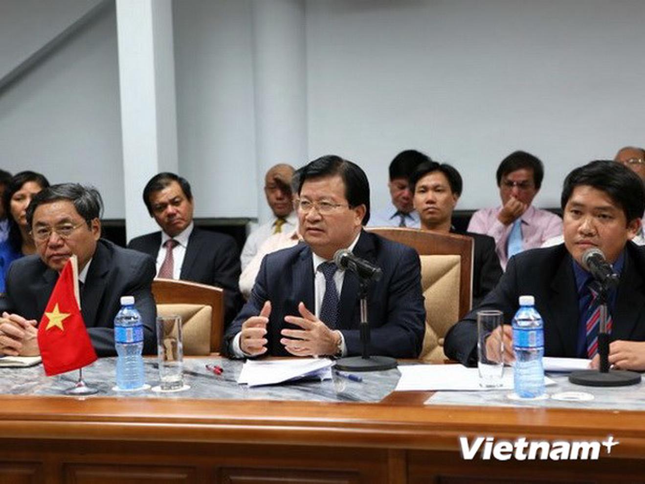 Bộ trưởng Xây dựng Trịnh Đình Dũng, Chủ tịch Phân ban Hợp tác Việt Nam - Cuba, phát biểu tại phiên khai mạc kỳ họp. (Ảnh: Phạm Hoài Nam/Vietnam+)