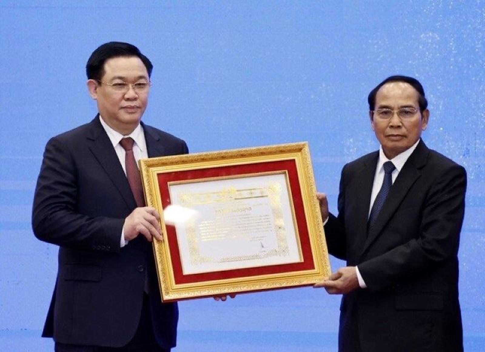 Thay mặt Đảng, Nhà nước Lào, Phó Chủ tịch nước Lào Bounthong Chitmany đã trao Huân chương Vàng quốc gia - Huân chương cao quý nhất của Nhà nước Cộng hoà dân chủ Nhân dân Lào cho Thủ tướng Chính phủ Phạm Minh Chính; Chủ tịch Quốc hội Vương Đình Huệ.