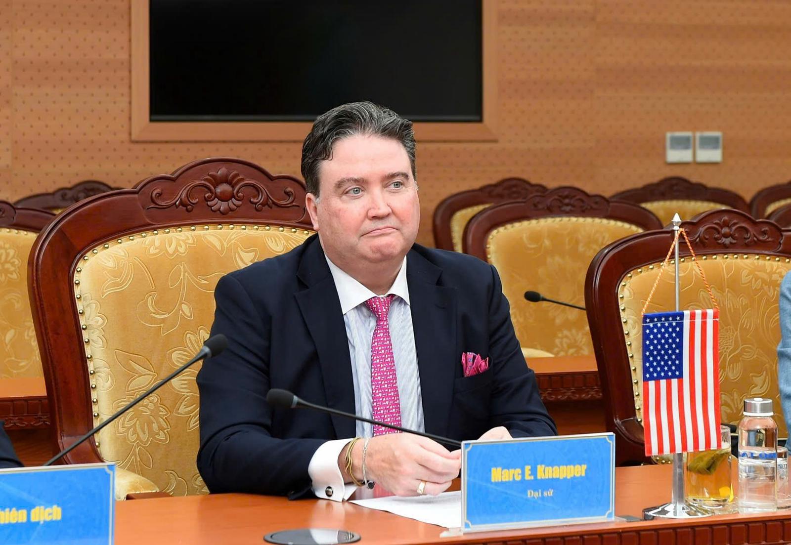 Đại sứ Hoa Kỳ Marc E. Knapper phát biểu tại buổi làm việc. Ảnh: TC