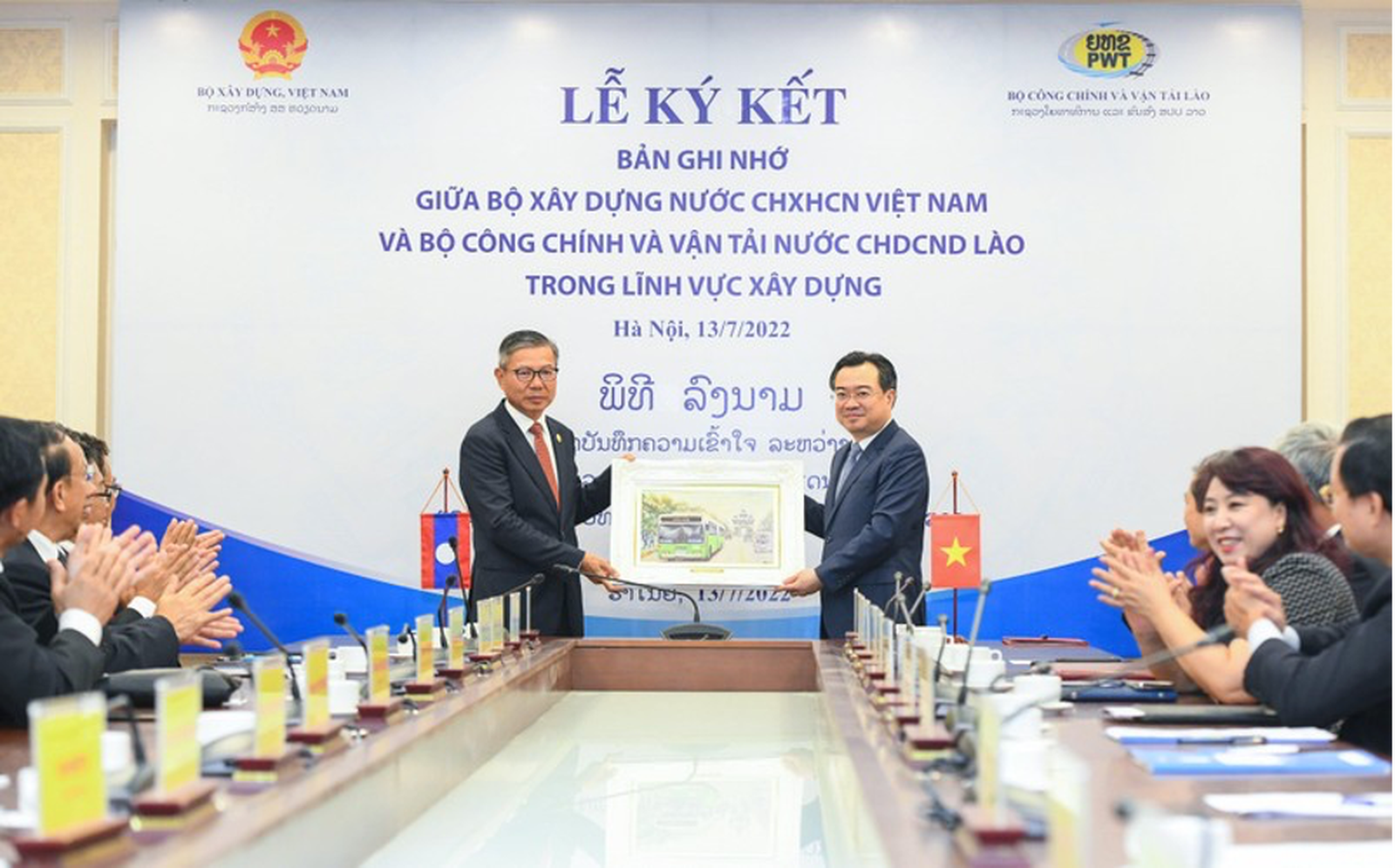 Cũng tại buổi làm việc, Bộ Xây dựng Việt Nam và Bộ Công chính và Vận tải Lào đã ký kết Bản ghi nhớ giữa Bộ Xây dựng Việt Nam với Bộ Công chính và Vận tải Lào trong lĩnh vực xây dựng.