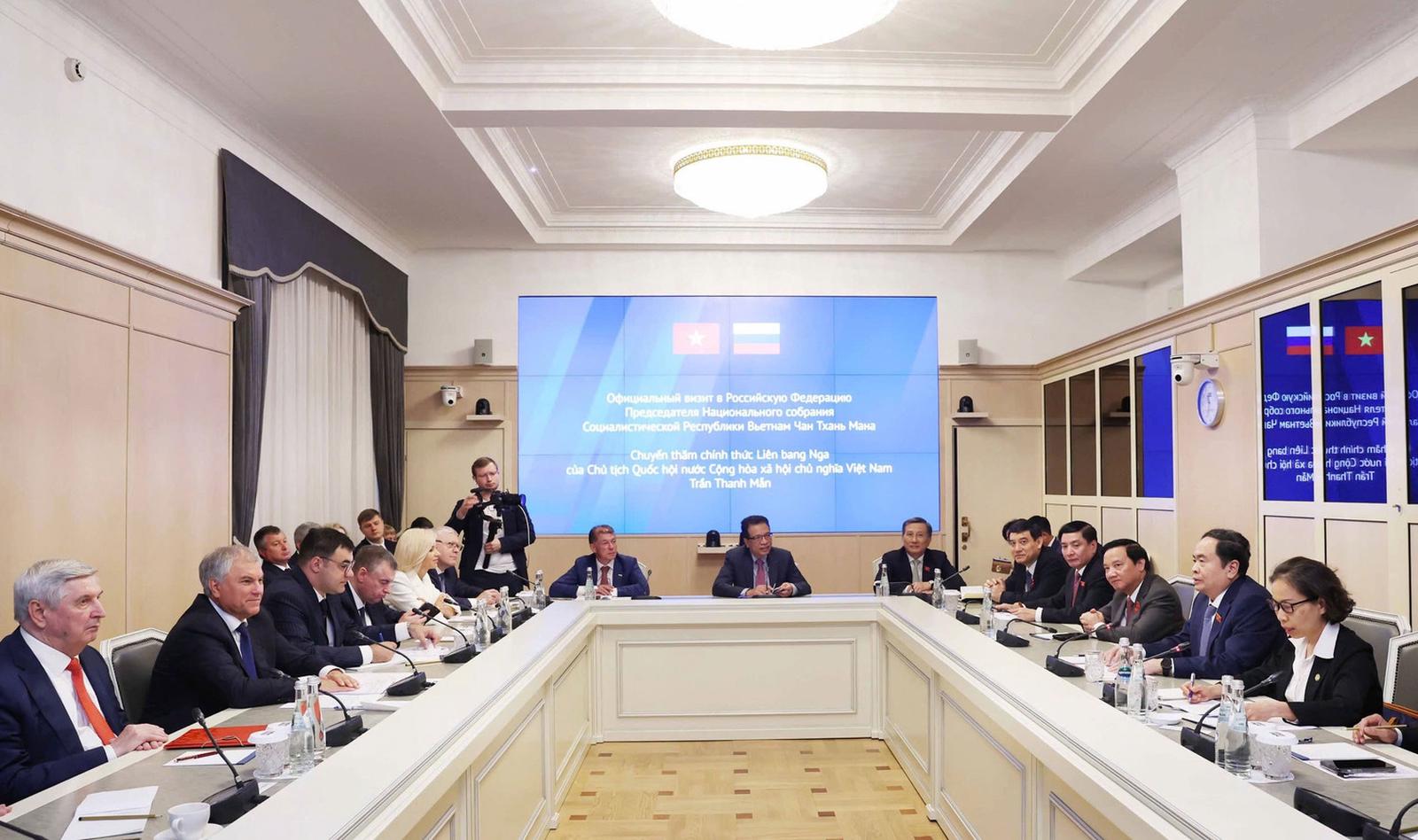 Chủ tịch Quốc hội Trần Thanh Mẫn cũng nhấn mạnh Việt Nam đặc biệt coi trọng quan hệ hợp tác với Nga trên tất cả các kênh.