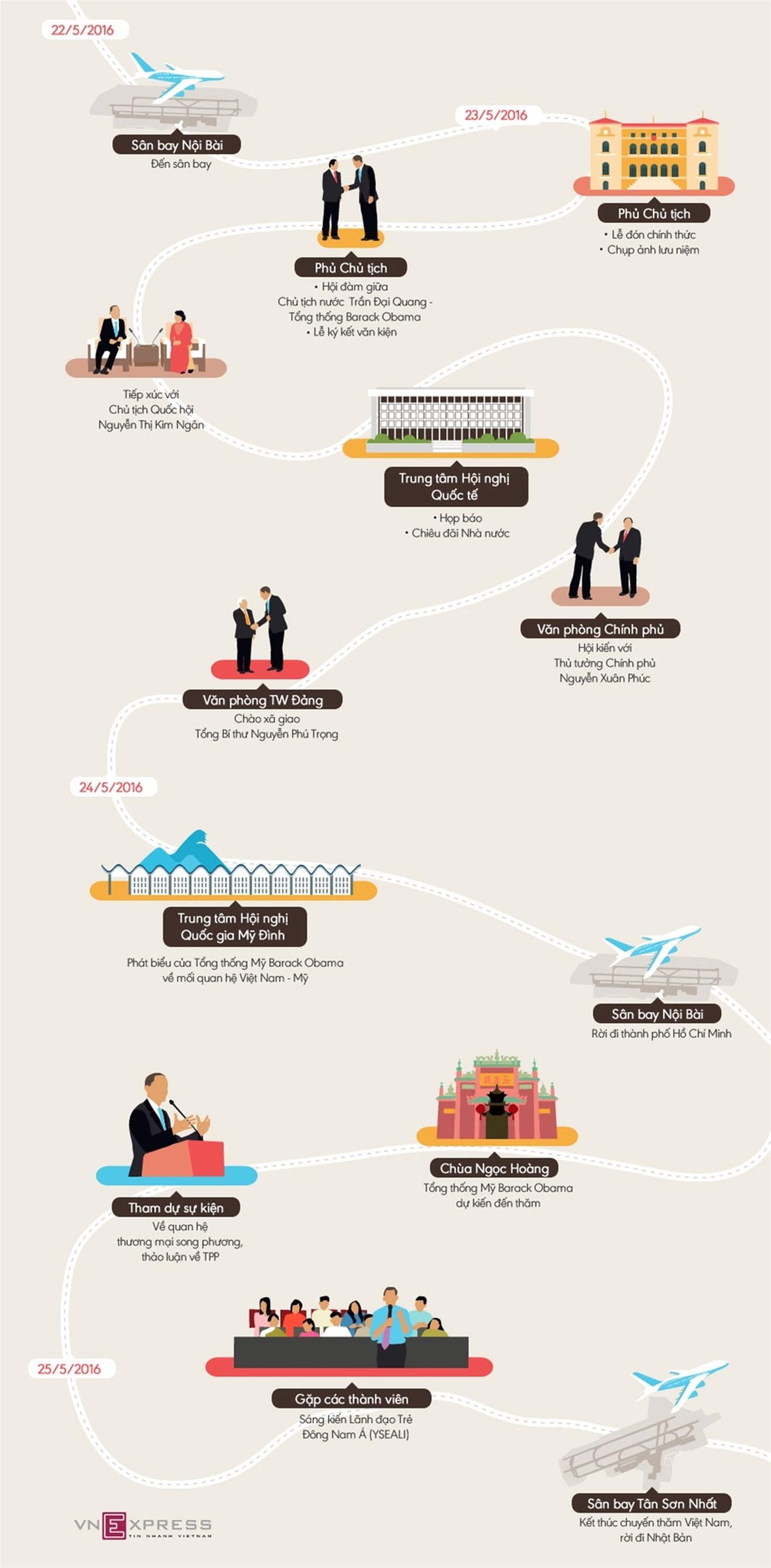 Ông Obama có chuyến thăm dài một cách đáng chú ý ở Việt Nam, với nghị trình làm việc tập trung vào các diễn biến hiện tại và tham vọng cho tương lai.