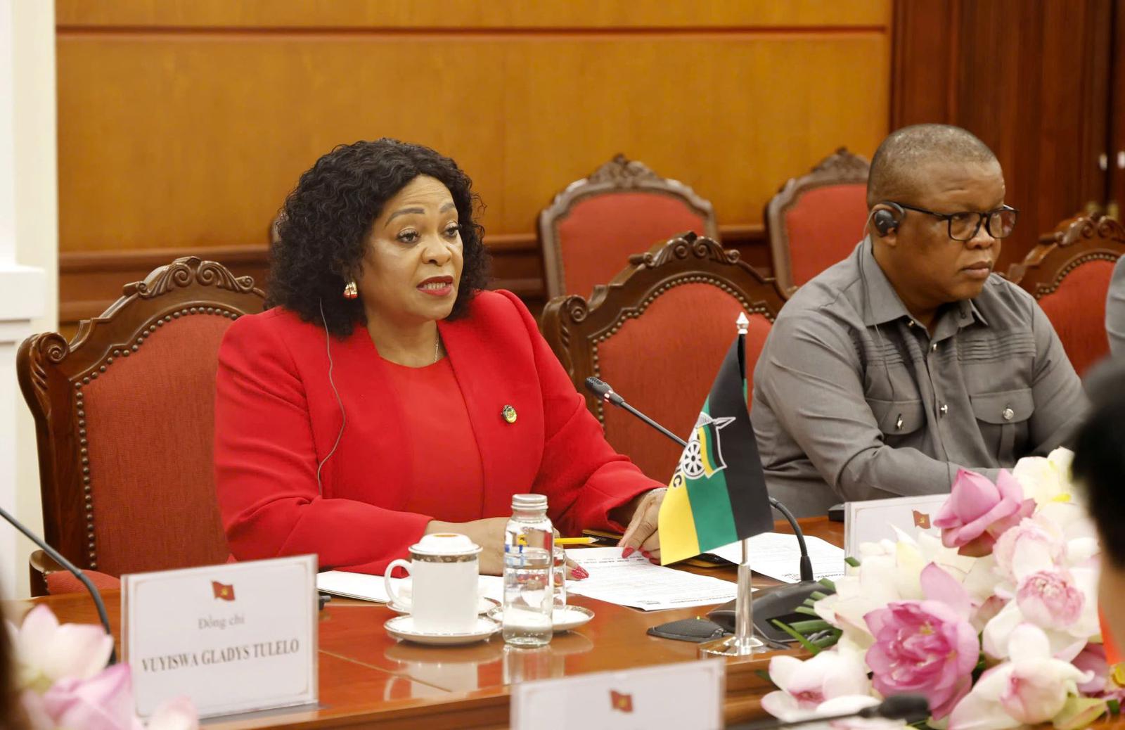 Bà đồng thời tiếp tục khẳng định cam kết của Đảng ANC và Chính phủ Nam Phi trong việc thúc đẩy quan hệ hữu nghị truyền thống và hợp tác nhiều mặt với Việt Nam.