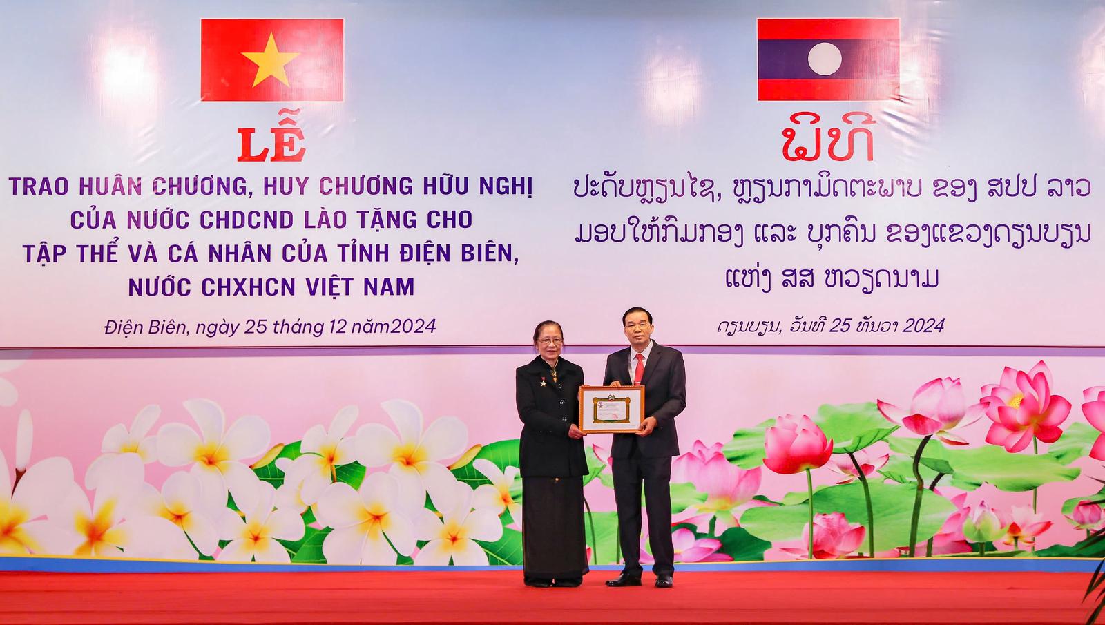 Nhân dịp này, Chính phủ Lào trao tặng Huy chương Hữu nghị cho ông Trần Văn Sơn, Bộ trưởng, Chủ nhiệm Văn phòng Chính phủ, nguyên Bí thư Tỉnh ủy Điện Biên và bà Lò Mai Trinh, nguyên Bí thư Tỉnh ủy Điện Biên.