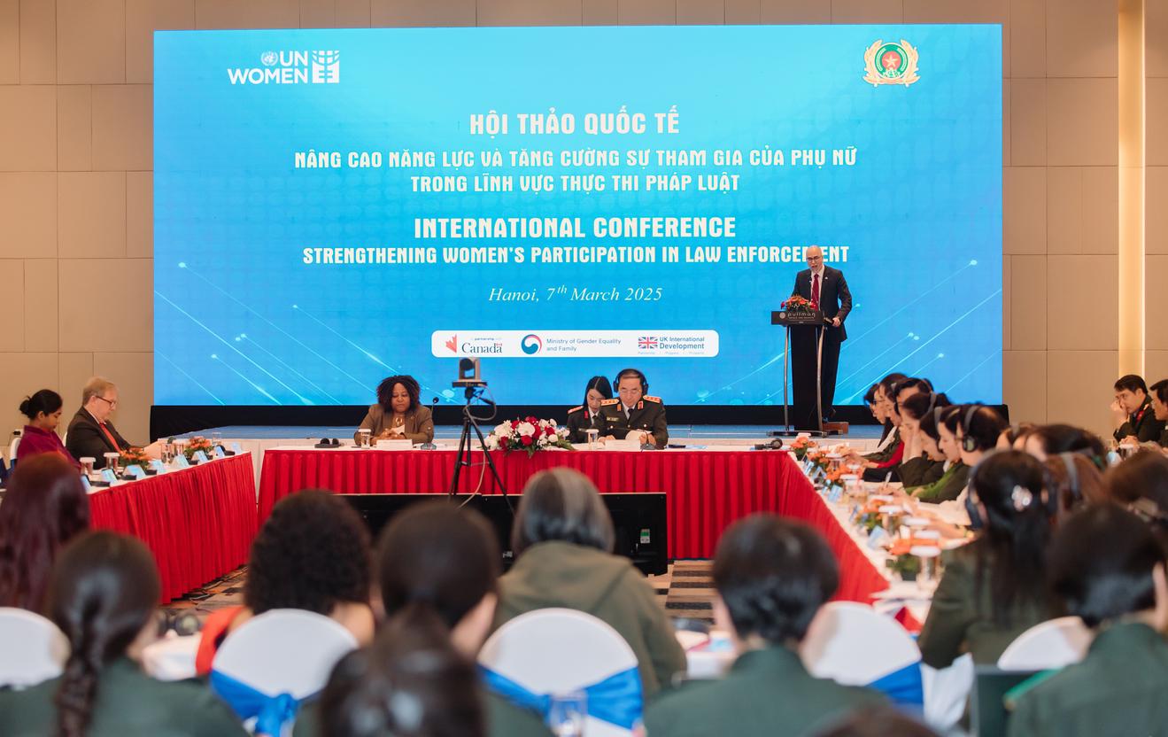 Khai mạc hội thảo, bà Caroline Nyamayemombe, Trưởng đại diện UN Women, đã đánh giá cao sự tham gia của phụ nữ Công an Nhân dân trong công tác thực thi pháp luật, đặc biệt là sự đóng góp của các nữ sĩ quan Công an Nhân dân tham gia lực lượng gìn giữ hòa bình Liên hợp quốc.