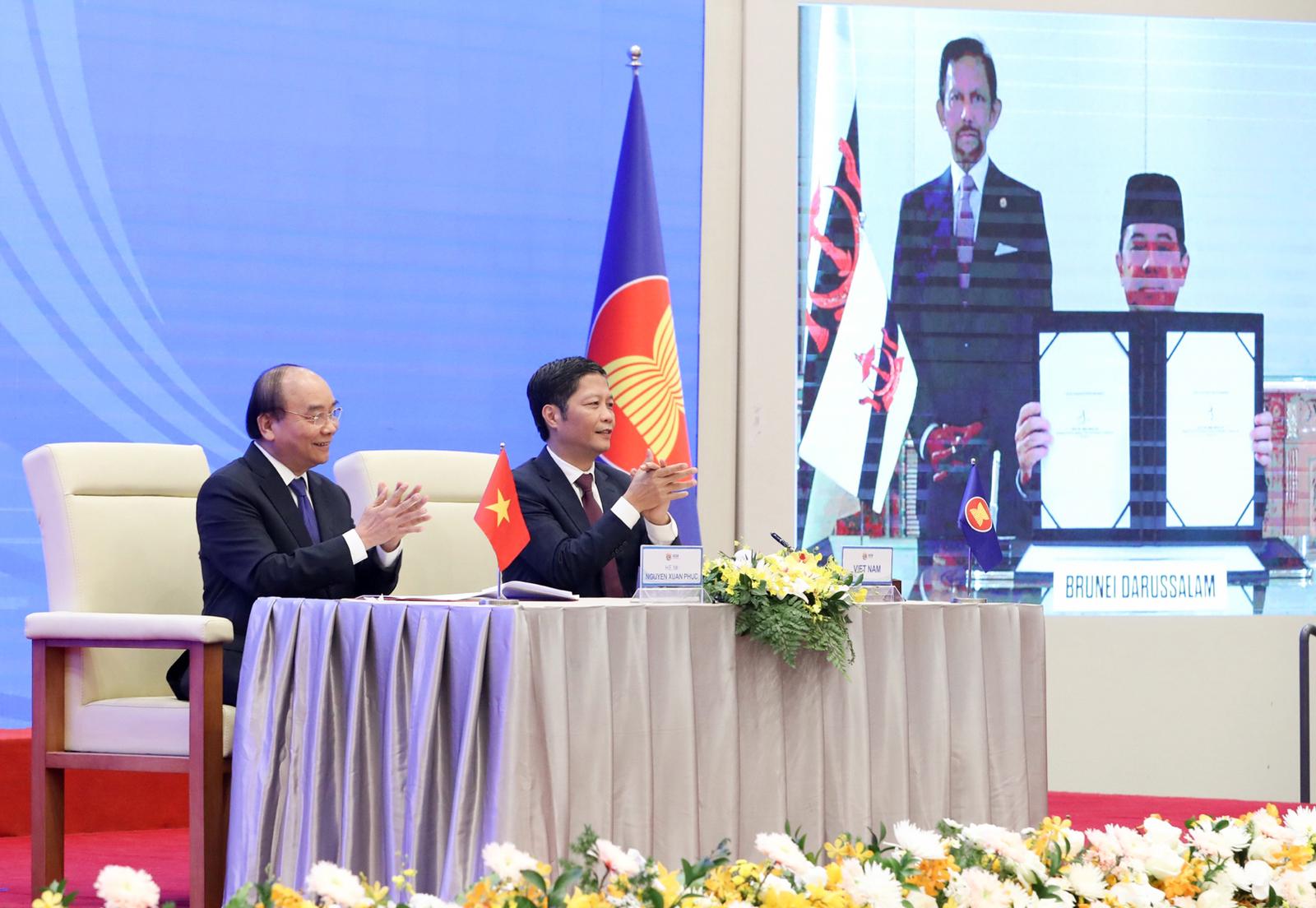 Phát biểu tại lễ ký kết, Thủ tướng Chính phủ Nguyễn Xuân Phúc nhấn mạnh, ASEAN và các nước đối tác đã hoàn thành thắng lợi việc đàm phán Hiệp định RCEP với khối lượng công việc đồ sộ, mở ra một giai đoạn hợp tác kinh tế thương mại mới đầy hứa hẹn, tốt đẹp.