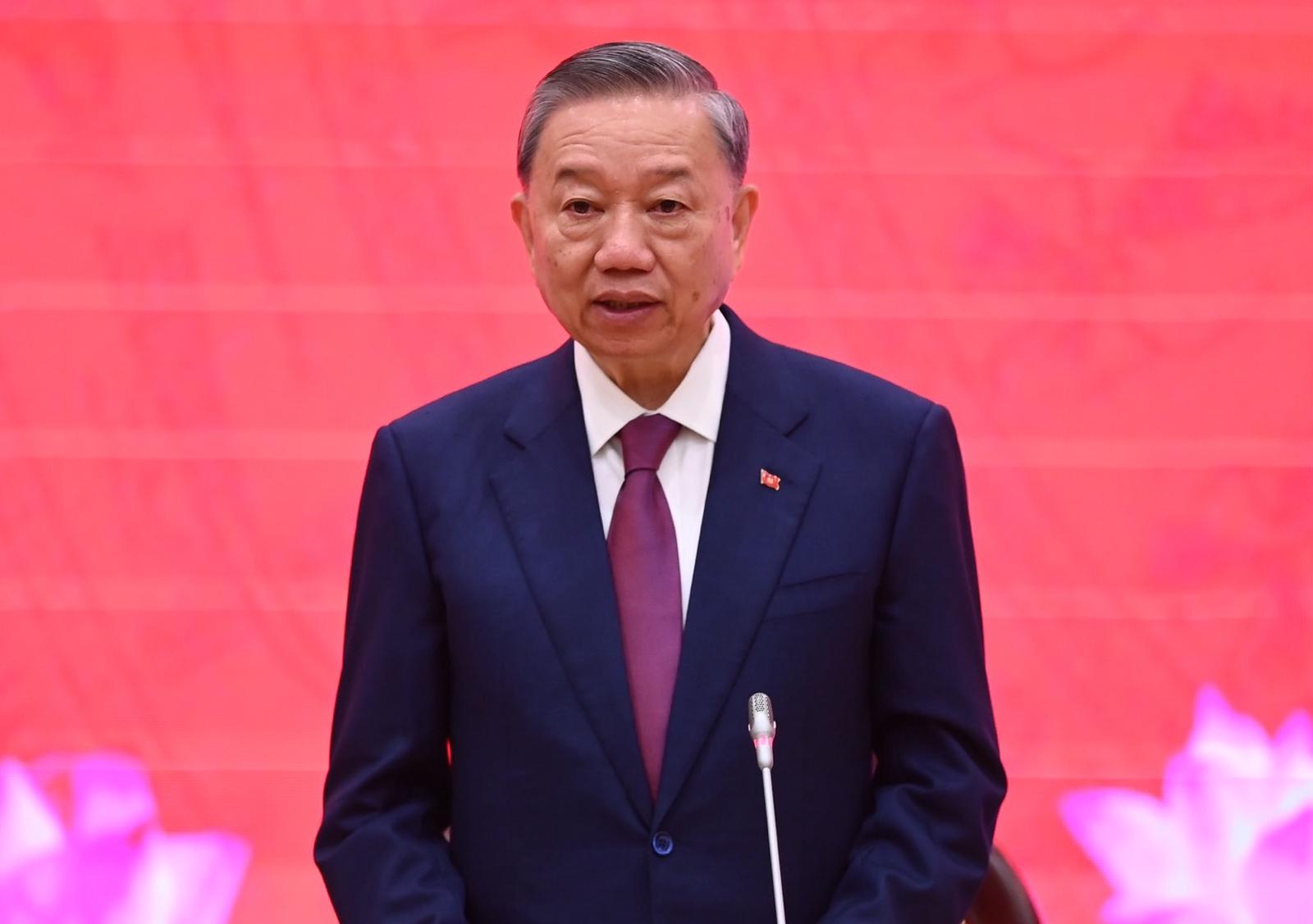 Sau đó, Tổng Bí thư Tô Lâm đã có bài phát biểu khẳng định kế thừa và phát huy những thành quả cách mạng mà cố Tổng Bí thư Nguyễn Phú Trọng và các thế hệ lãnh đạo đi trước đã gây dựng; duy trì sự đoàn kết, thống nhất và cùng tập thể Ban Chấp hành Trung ương Đảng, Bộ Chính trị, Ban Bí thư quyết tâm lãnh đạo, chỉ đạo toàn Đảng, toàn dân, toàn quân ta thực hiện thắng lợi các mục tiêu, nhiệm vụ Đại hội Đảng toàn quốc lần thứ XIII đã đề ra, tổ chức thành công Đại hội XIV, đưa đất nước vững bước phát triển trong giai đoạn mới.