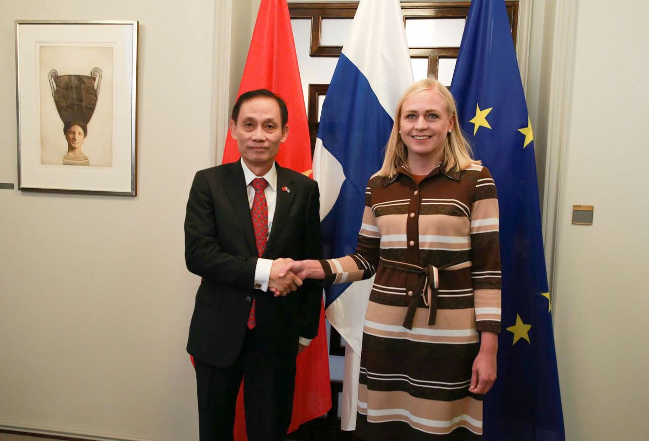Bộ trưởng Valtonen nhấn mạnh, Bộ Ngoại giao Phần Lan sẽ phối hợp chặt chẽ với phía Việt Nam để cụ thể hóa các nội dung hợp tác chiến lược, nhất là trong các lĩnh vực hai bên cùng có thế mạnh như thương mại – đầu tư, khoa học – công nghệ, năng lượng tái tạo, giáo dục – đào tạo. Bà cũng bày tỏ mong muốn thúc đẩy hợp tác về chuyển đổi xanh, hỗ trợ Việt Nam trong mục tiêu trung hòa các-bon vào năm 2050, đồng thời sẵn sàng hợp tác kỹ thuật giúp Việt Nam sớm gỡ bỏ “thẻ vàng” IUU của Ủy ban châu Âu.